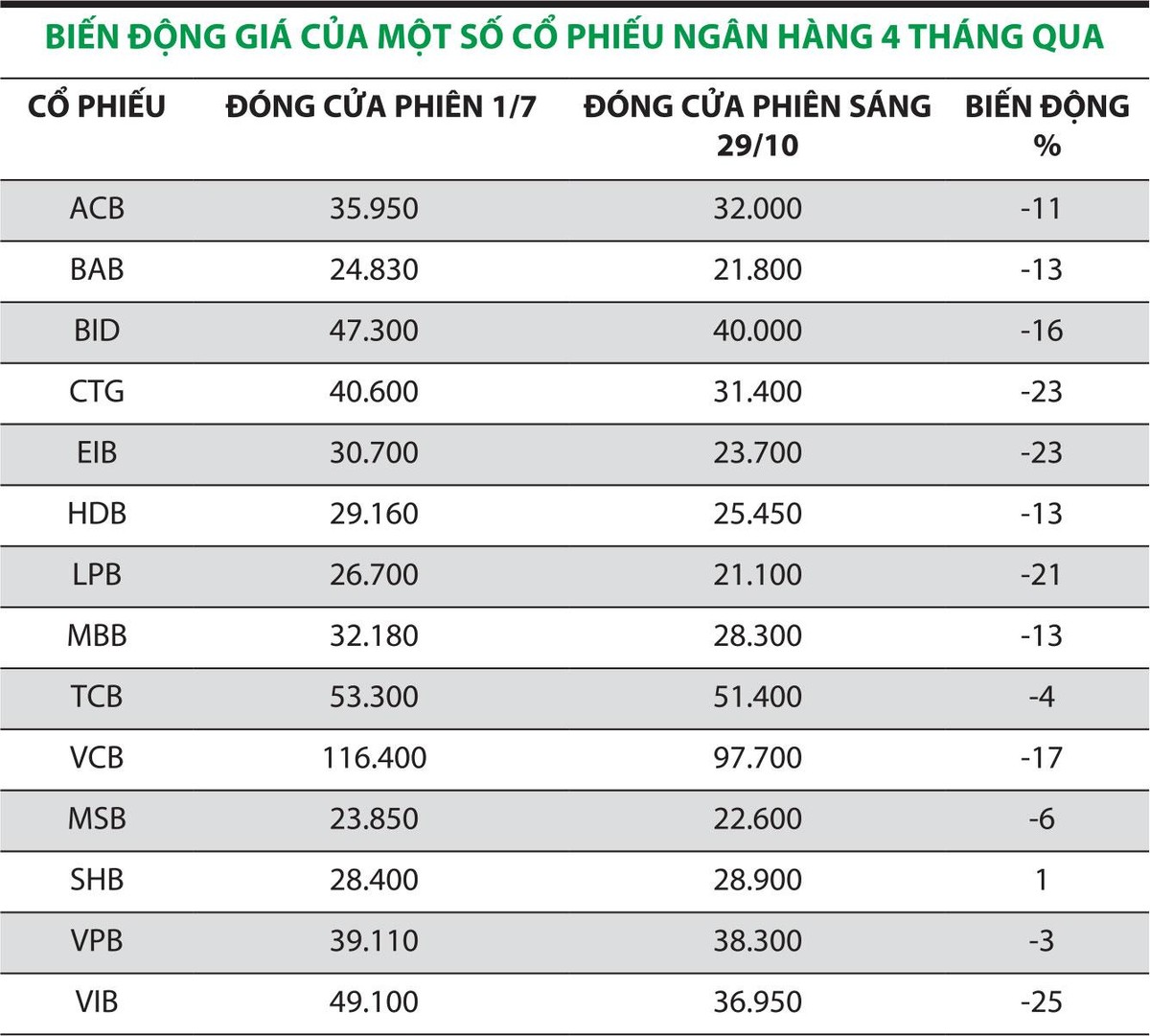 So với đầu tháng 7, một số cổ phiếu bank đã mất 1/4 giá trị.