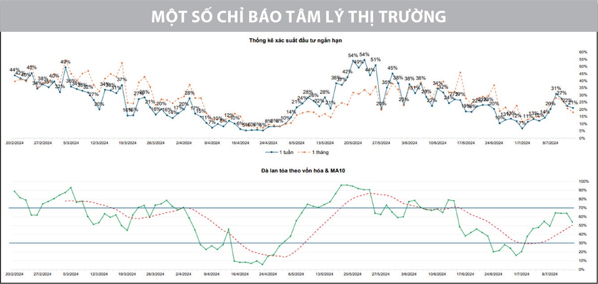 Các chỉ báo định lượng không cho thấy chuyển biến xấu đi của thị trường khi dòng tiền vẫn “bám dính” tốt ở các nhóm cổ phiếu, đặc biệt là các nhóm dẫn dắt sóng hồi lần này như ngân hàng, hóa chất, dệt may, công nghệ thông tin, bán lẻ. Mức chiết khấu tại nhóm cổ phiếu tăng tốt cũng không quá mạnh, nền giá của các cổ phiếu đều không có dấu hiệu bị vi phạm. Điều này phù hợp với các dịch chuyển có tính tích lũy, củng cố sau các cú bật tăng trong tuần trước.