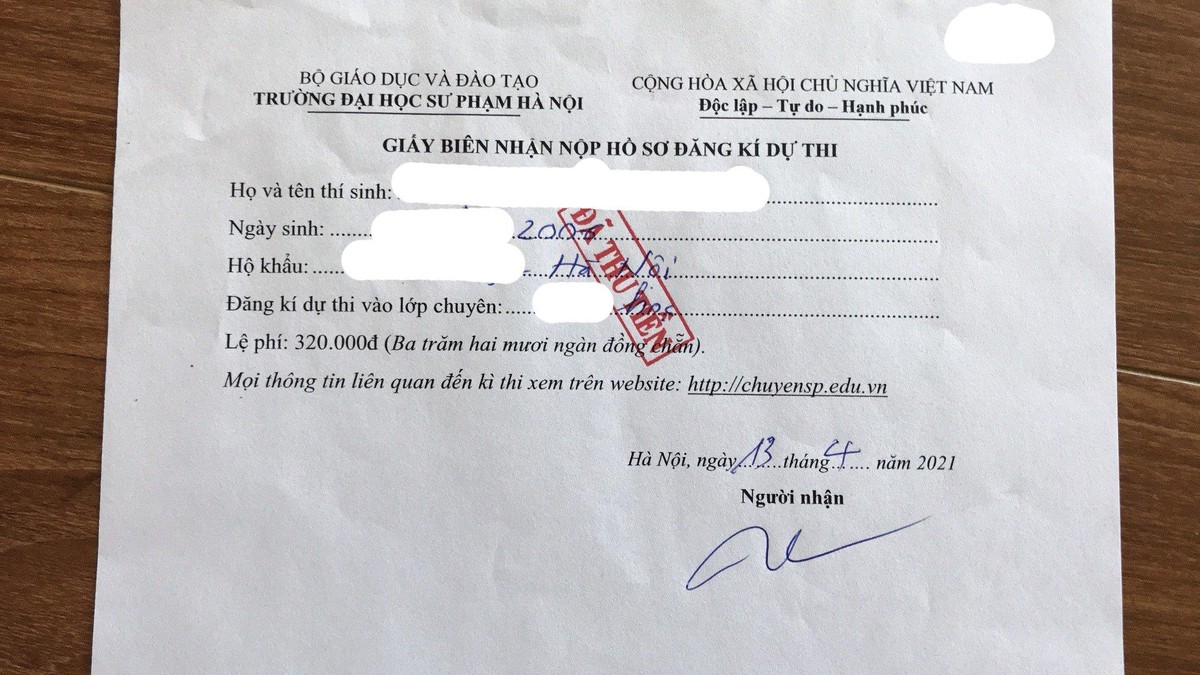 Anh P.T.B ở Hà Nội cho biết, trung tuần tháng 4 năm nay, anh đăng ký thi lớp 10 trường Trung học Phổ thông chuyên Đại học Sư phạm Hà Nội năm học 2021-2022 cho con với lệ phí 320.000 đồng. Do dịch bệnh bùng phát nên việc thi vào lớp 10 bị lùi lại và với khung thời gian eo hẹp dẫn đến khối trường chuyên thuộc quản lý của các trường Đại học tổ chức thi tuyển sinh ngay sau kỳ thi của Sở Giáo dục và Đào tạo Hà Nội chấm dứt dẫn đến hiện tượng trùng ngày thi với nhau.