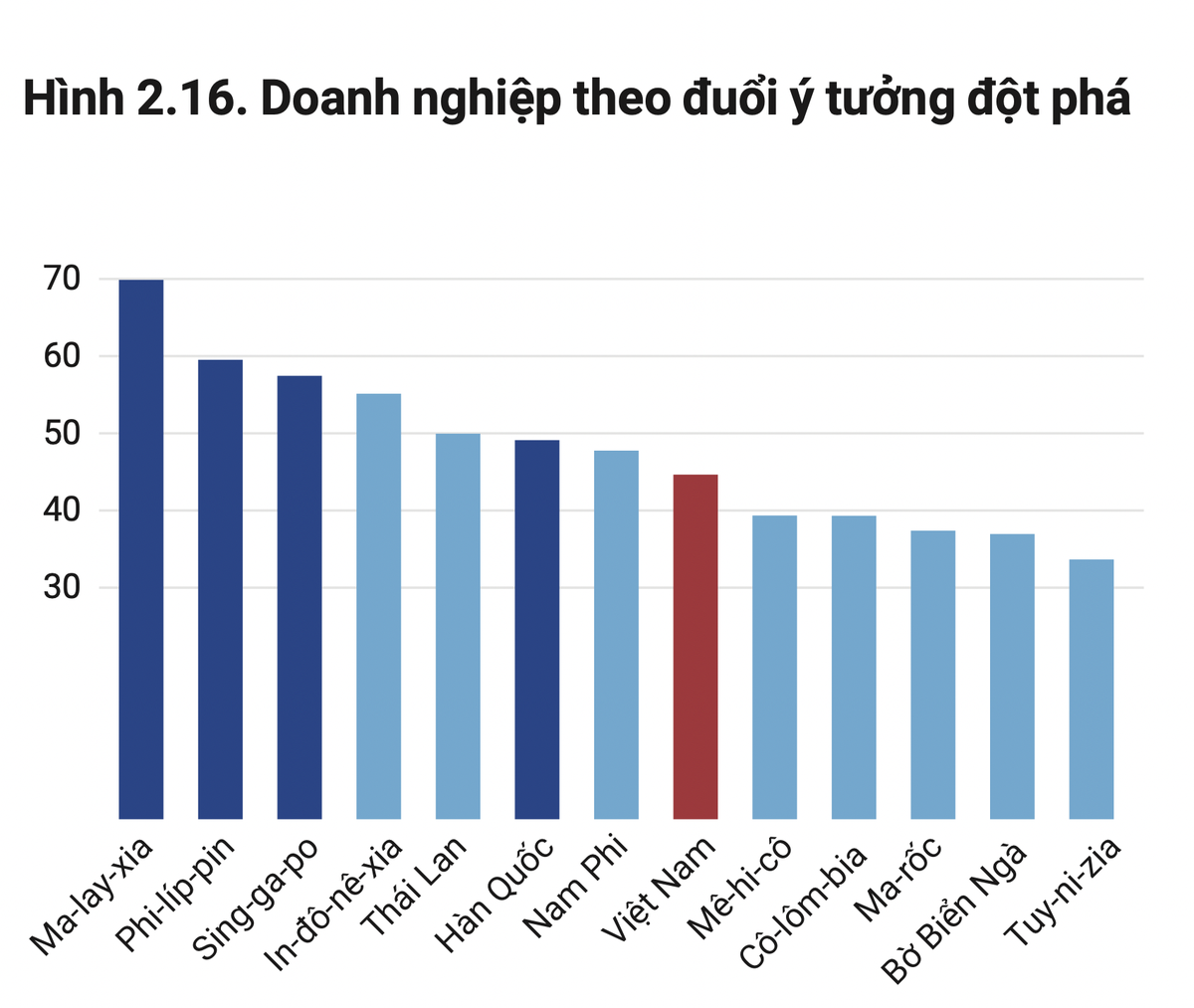 Trước khủng hoảng COVID-19, năng lực đổi mới sáng tạo của Việt Nam chỉ quanh mức trung bình, đi sau nhiều quốc gia so sánh về sử dụng công nghệ số. Việt Nam có thứ hạng hơi thấp hơn mức bình quân về tốc độ tăng trưởng của doanh nghiệp đổi mới sáng tạo, đăng ký bằng sáng chế và mức độ tinh thông của khách hàng, trong khi chạy theo sau về số bằng phát minh, sáng chế.