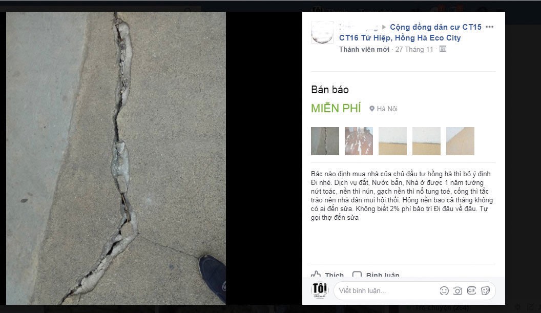 Cư dân Hồng Hà tố chủ đầu tư về chất lượng yếu kém của công trình