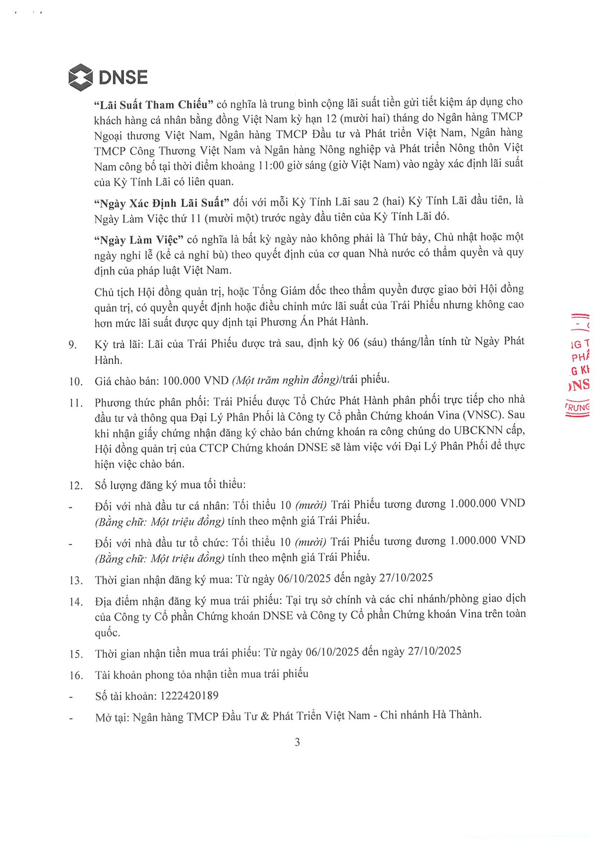 Công ty Cổ phần Chứng khoán DNSE (DSE): Thông báo chào bán cổ phiếu ra công chúng (Kỳ 2) 06/10/2025 08:00