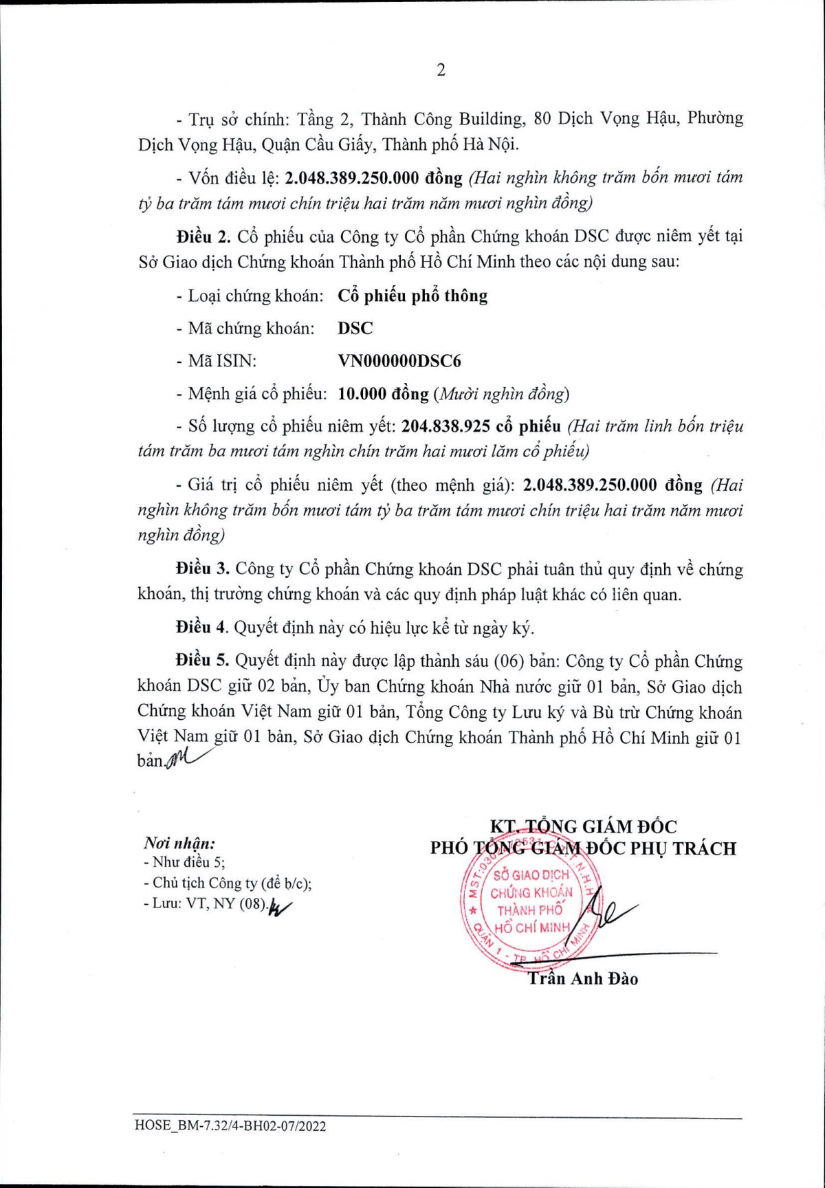 Tin liên quan Chứng khoán DSC Đà Nẵng khai trương văn phòng mới 11/09/2024 14:16 Chứng khoán DSC: Lợi nhuận trước thuế quý I/2024 đạt 74 tỷ đồng, cao hơn 5 lần so với cùng kỳ 11/04/2024 18:57 Chứng khoán DSC (DSC) nộp hồ sơ niêm yết trên sàn HOSE 05/03/2024 11:47 Từ khóa DSC DSC niêm yết chứng khoán DSC