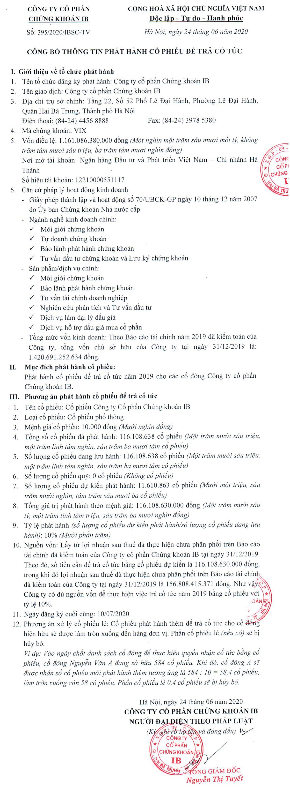 Công ty cổ phần Chứng khoán IB thông báo phát hành cổ phiếu để trả cổ tức