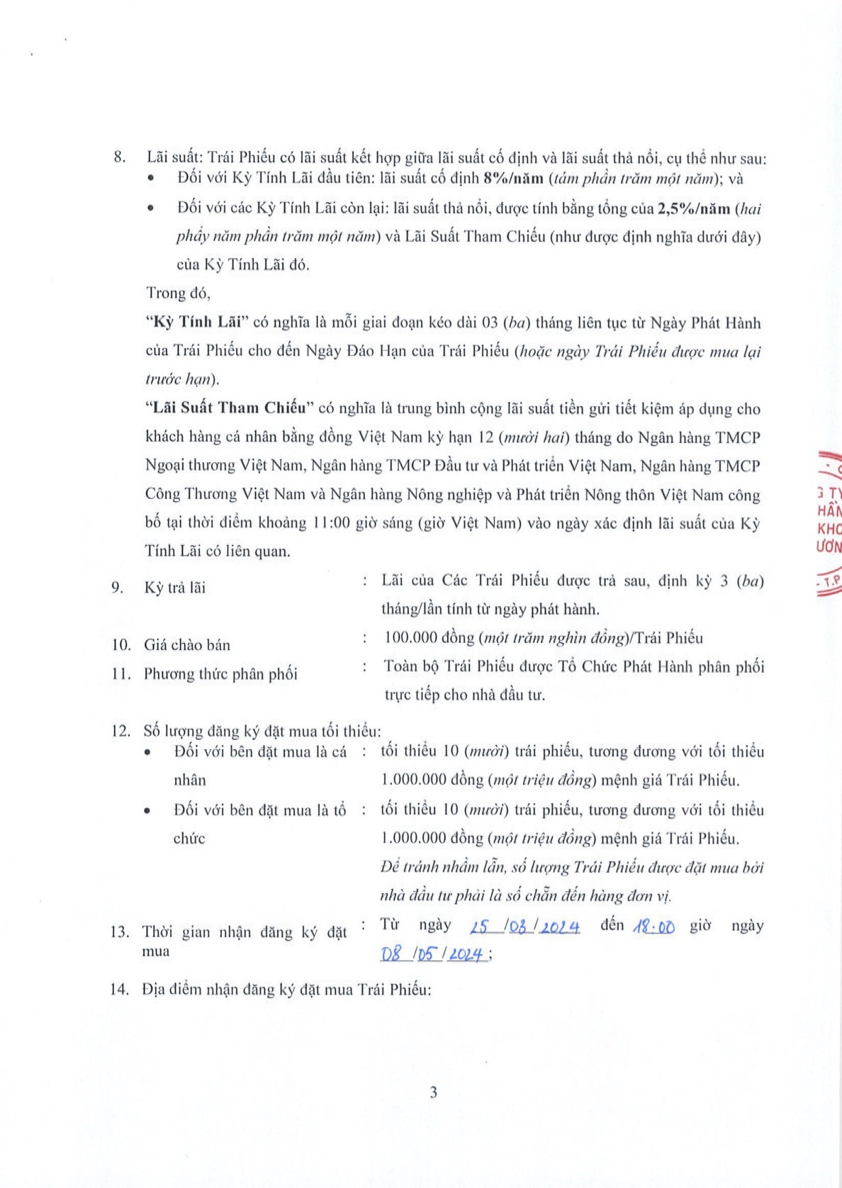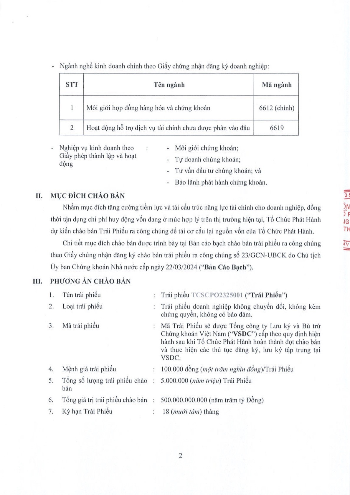 Công ty Cổ phần Chứng khoán Kỹ Thương (TCBS) thông báo chào bán trái phiếu ra công chúng đợt 2 (TCSCPO2325002) theo GCNĐK chào bán số 24/GCN-UBCK do Chủ tịch UBCKNN cấp ngày 22/03/2024 25/03/2024 11:51