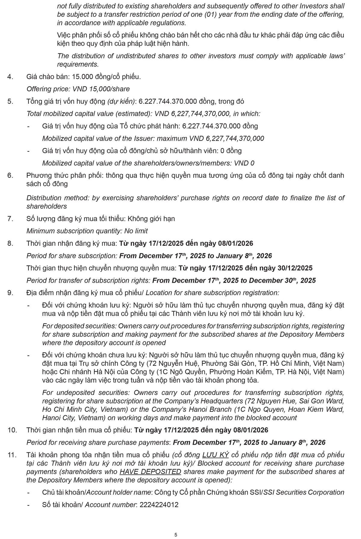 Công ty Cổ phần Chứng khoán Vietcap (VCI) thông báo về việc chào bán 20 mã Chứng quyền có bảo đảm (CW) - Đợt 1 năm 2025 (Kỳ 3) 22/11/2025 08:00