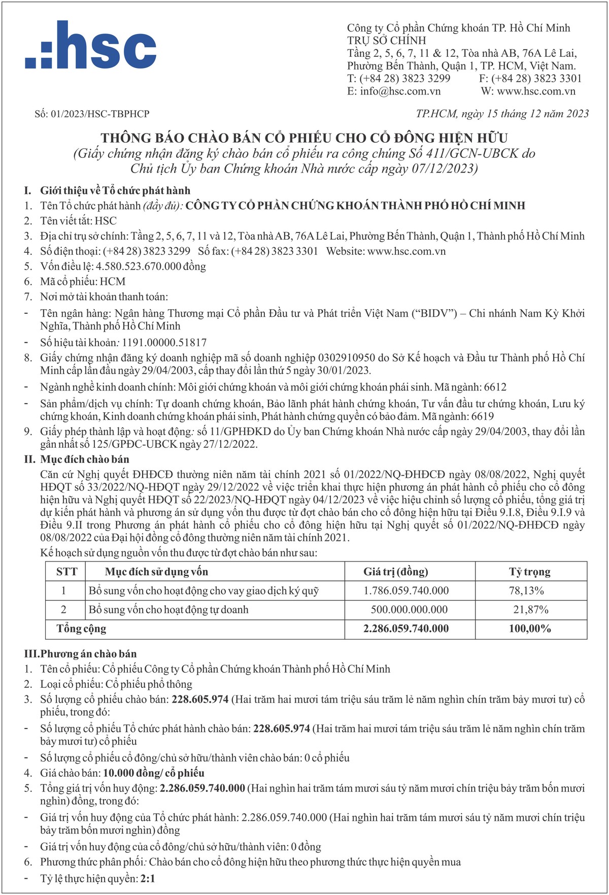 Chia sẻ Chia sẻ Tin liên quan HSC: 20 năm lớn mạnh cùng thị trường vốn 11/12/2023 08:00 Chứng khoán TP.HCM (HSC): Doanh thu và lợi nhuận tăng trưởng bình quân 36%/năm liên tục trong 20 năm 08/12/2023 14:31 Chứng khoán HSC (HCM) báo lãi quý III/2023 đạt mức cao nhất 5 quý gần đây 23/10/2023 06:33 Từ khóa HSC phát hành cổ phiếu