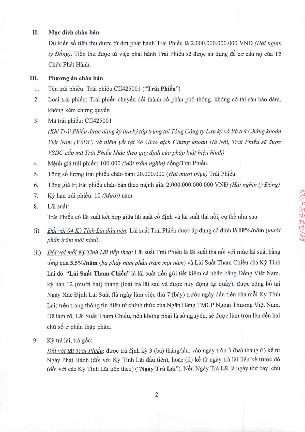 Tin liên quan Đầu tư Hạ tầng Kỹ thuật TP.HCM (CII): Cổ phiếu bật tăng hơn 51%, một lãnh đạo đăng ký bán toàn bộ 500.000 cổ phiếu 28/05/2025 06:39 Nhóm Đầu tư Hạ tầng Kỹ thuật TP.HCM (CII) mua hơn 10 triệu cổ phiếu Năm Bảy Bảy (NBB) từ một cổ đông lớn 13/05/2025 07:04 Nút thắt quan trọng được tháo gỡ, CII có thể sớm triển khai các dự án bất động sản tại Thủ Thiêm 28/04/2025 11:52 Từ khóa CII