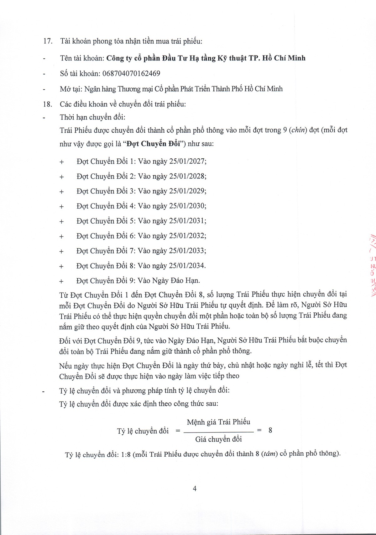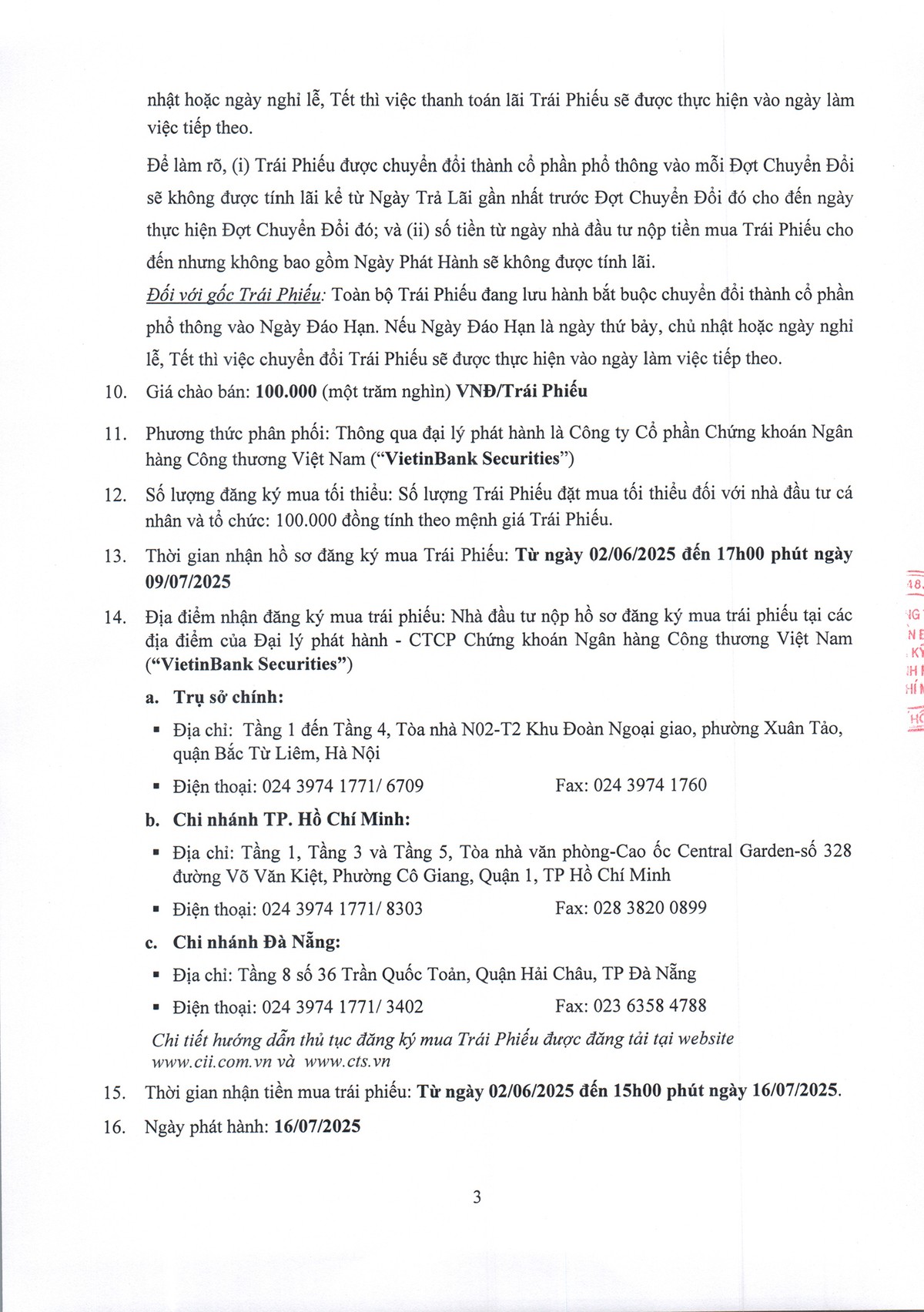 Công ty Cổ phần Xây dựng Coteccons (CTD) thông báo chào bán trái phiếu ra công chúng ( kỳ 1) 31/12/2025 19:00