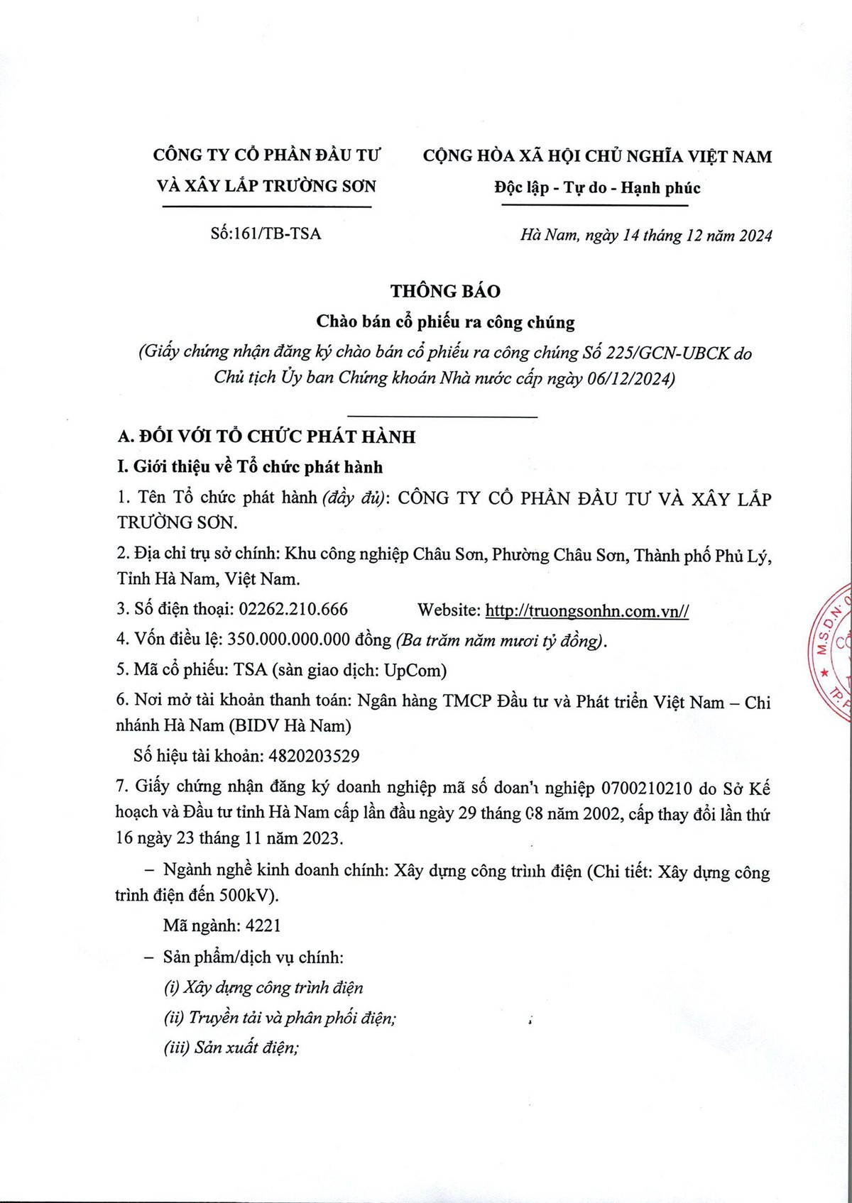 Tin liên quan TSA: Ngày GDKHQ tham dự Đại hội đồng cổ đông bất thường lần 2 năm 2024 30/08/2024 17:53 Xây lắp Trường Sơn (TSA): "Dày" việc nhưng mỏng vốn! 02/07/2024 07:06 Từ khóa TSA