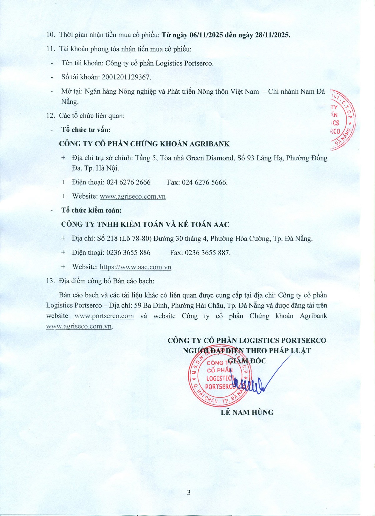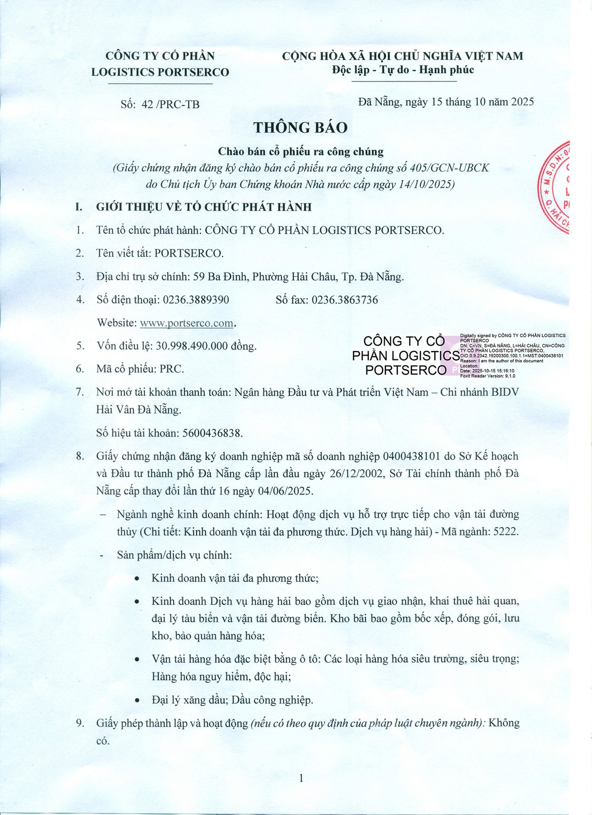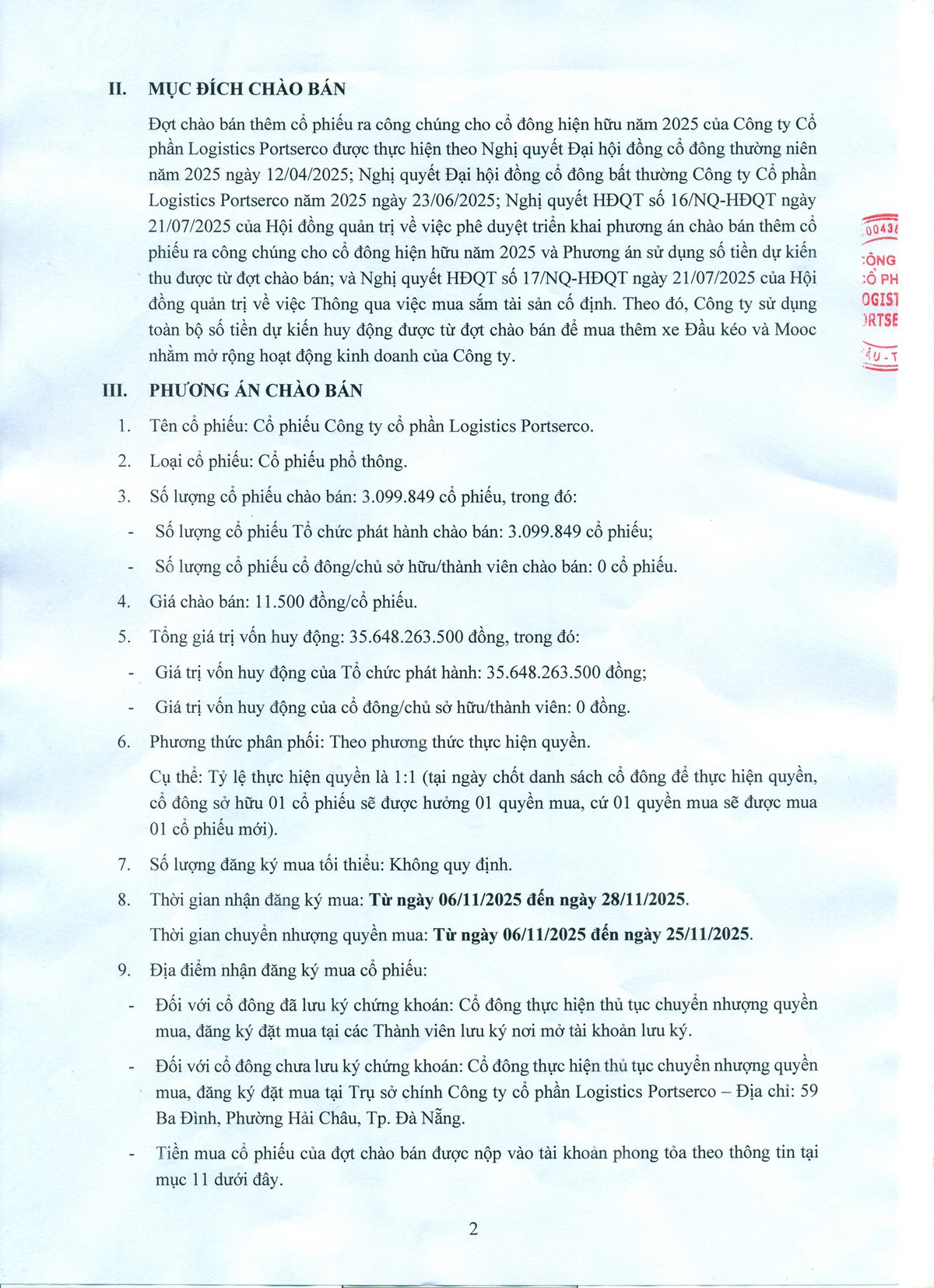 Công ty cổ phần Logistics Portserco (PRC) thông báo chào bán cổ phiếu ra công chúng (Kỳ 2) 17/10/2025 08:00