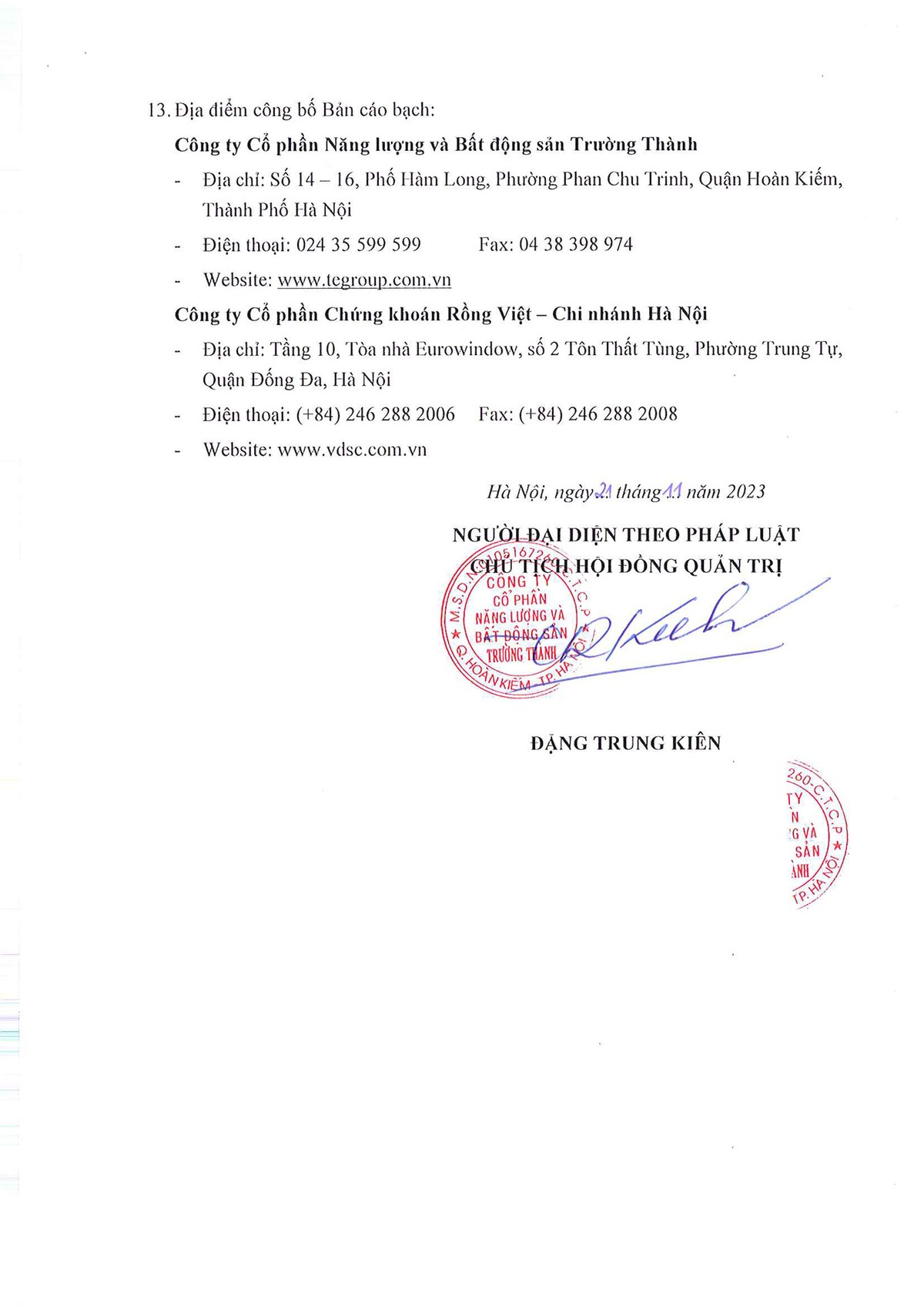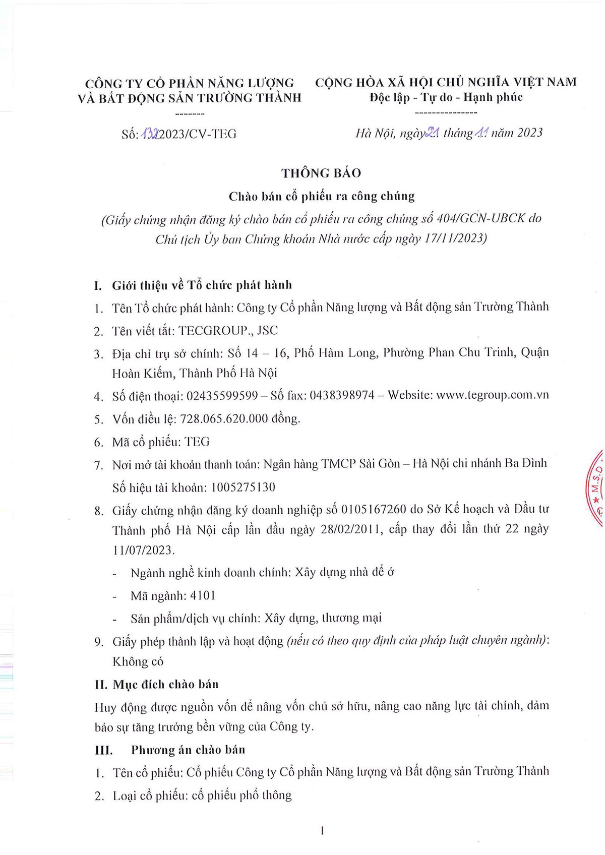 Tin liên quan Quý II/2023, lợi nhuận Năng lượng và Bất động sản Trường Thành (TEG) tăng 10,88 lần lên 67,13 tỷ đồng 02/08/2023 10:42 Lãnh đạo TEGroup (TEG) mua được 86,4% tổng lượng đăng ký 06/07/2023 06:46 TEGroup (TEG) muốn bán 32% vốn điều lệ một công ty con ở Hưng Yên 15/06/2023 06:30 Từ khóa TEG chào bán trái phiếu ra công chúng