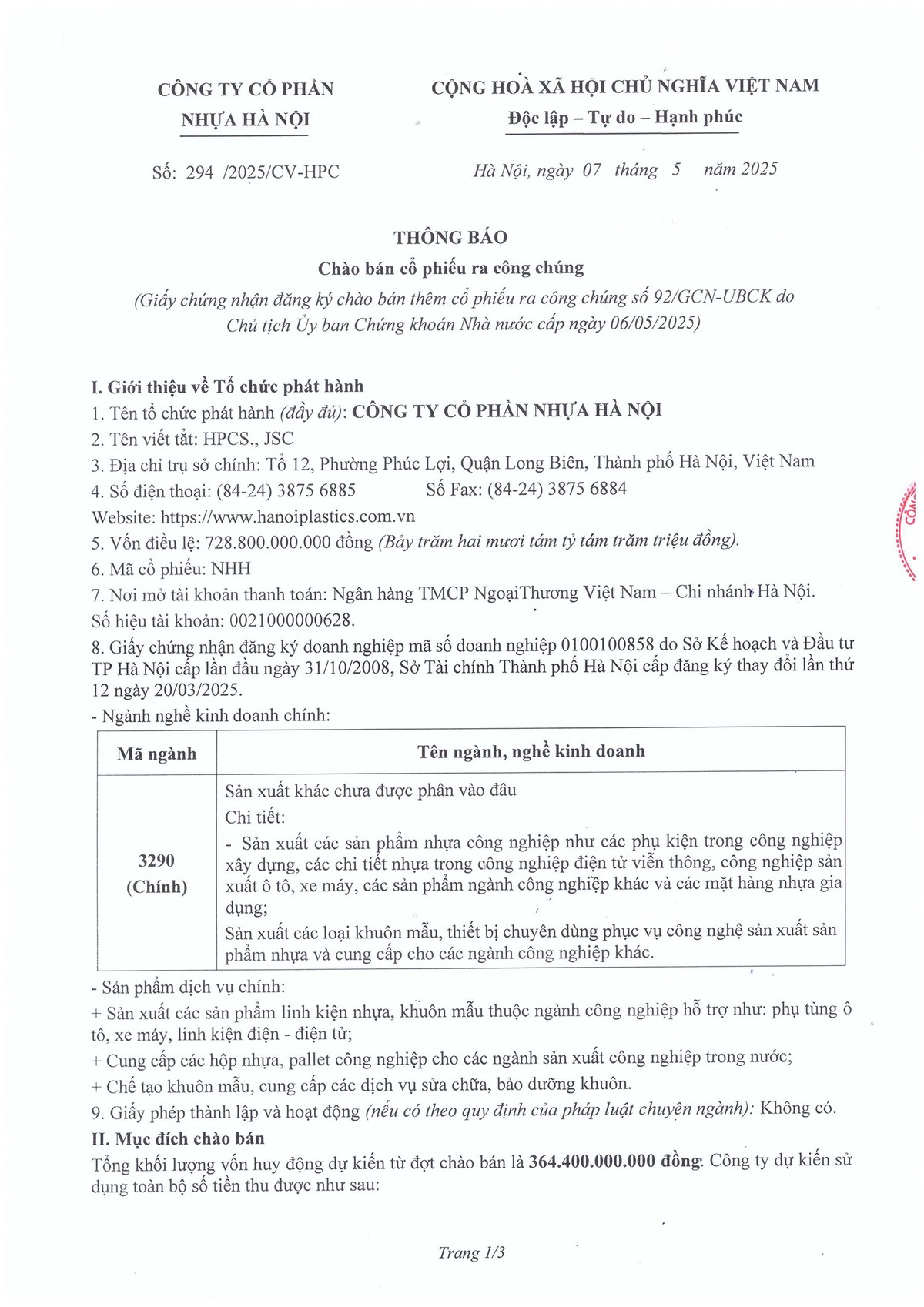 FPTS: Mảng nhựa xây dựng và nhựa linh kiện điện tử mang lại triển vọng khả quan cho Nhựa Hà Nội (NHH) 19/05/2024 08:31
