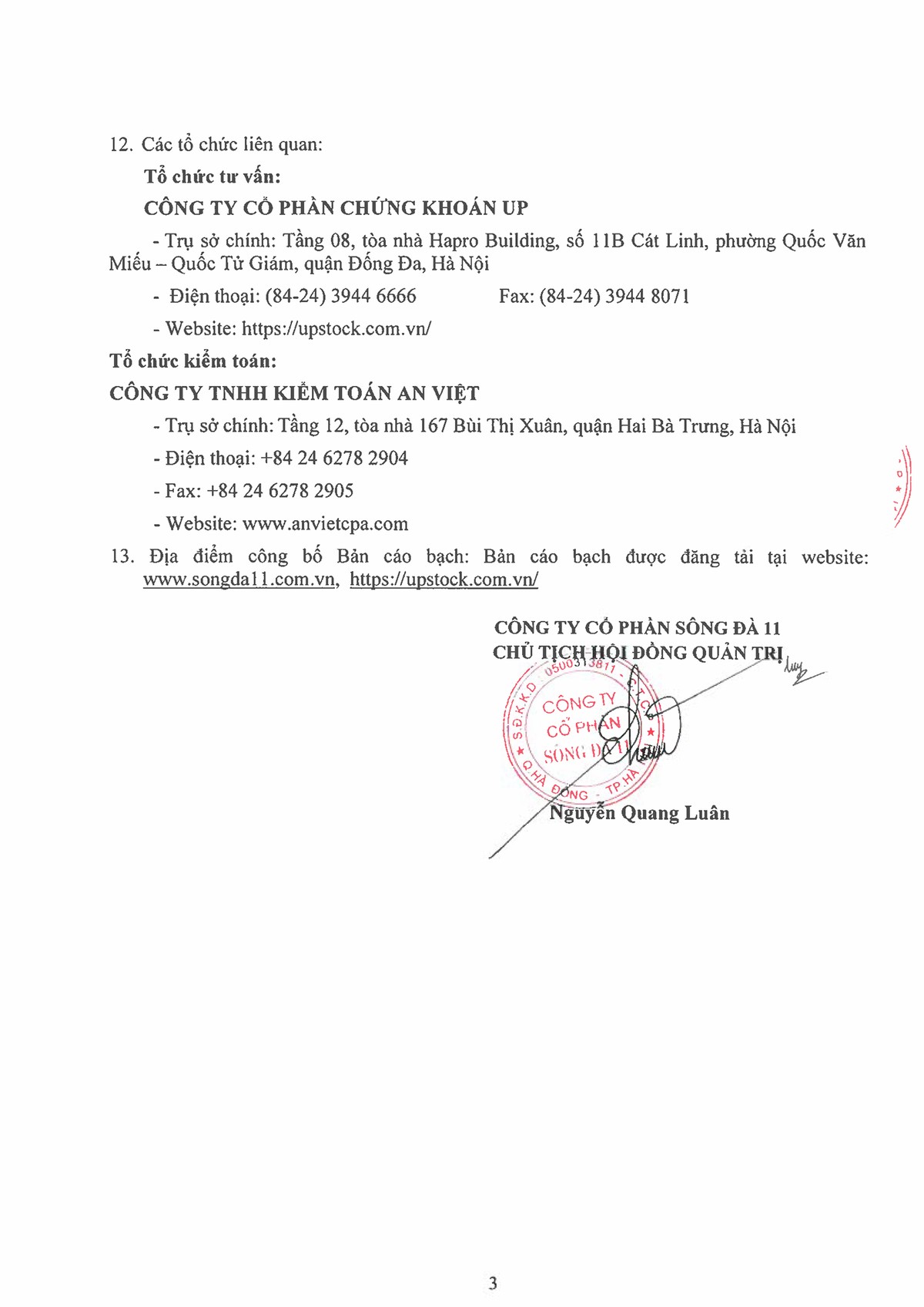Tin liên quan Sông Đà 11 (SJE) đặt mục tiêu lợi nhuận năm 2025 tăng 14,7% dù doanh thu giảm 07/03/2025 15:12 Sông Đà 11 (SJE) muốn chào bán hơn 18 triệu cổ phiếu cho cổ đông hiện hữu, giá 13.000 đồng 28/08/2024 14:31 SJE: Ngày GDKHQ lấy ý kiến cổ đông bằng văn bản 30/10/2024 15:29 Từ khóa Công ty Cổ phần Sông Đà 11 SJE