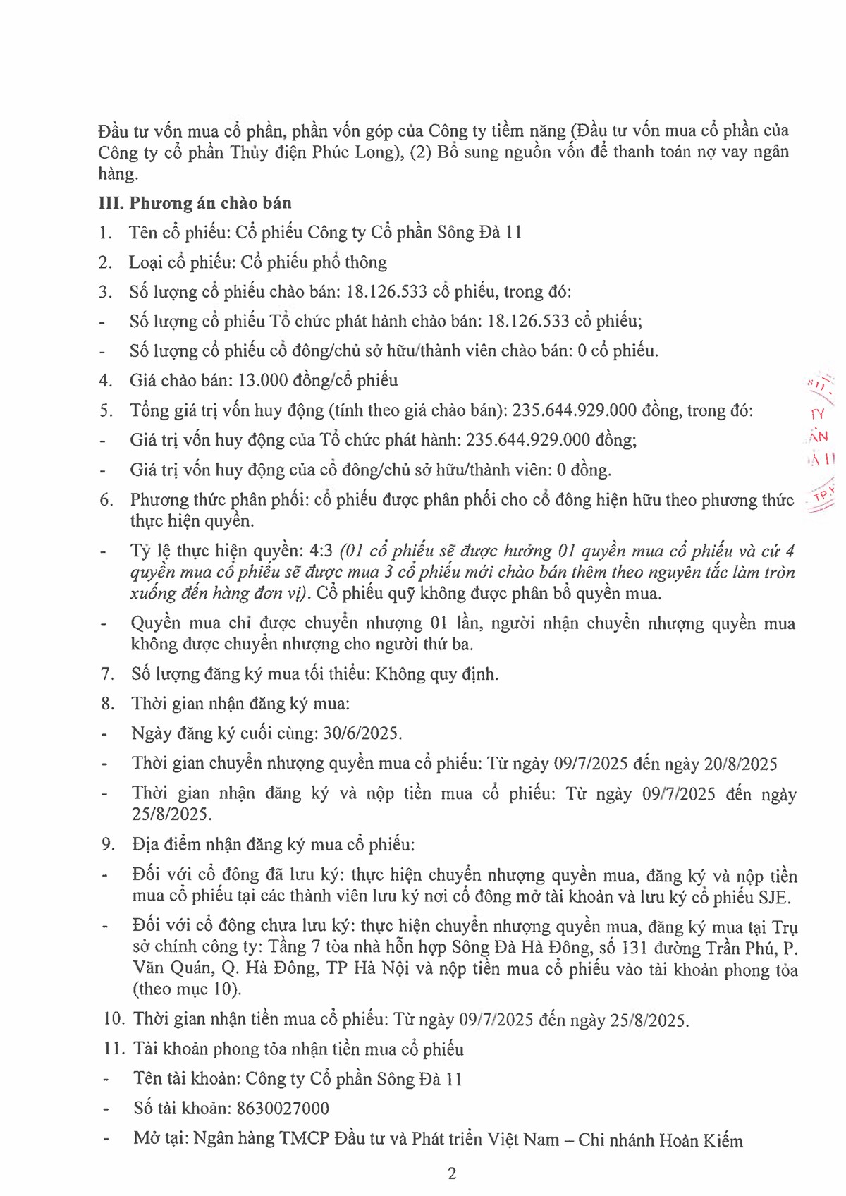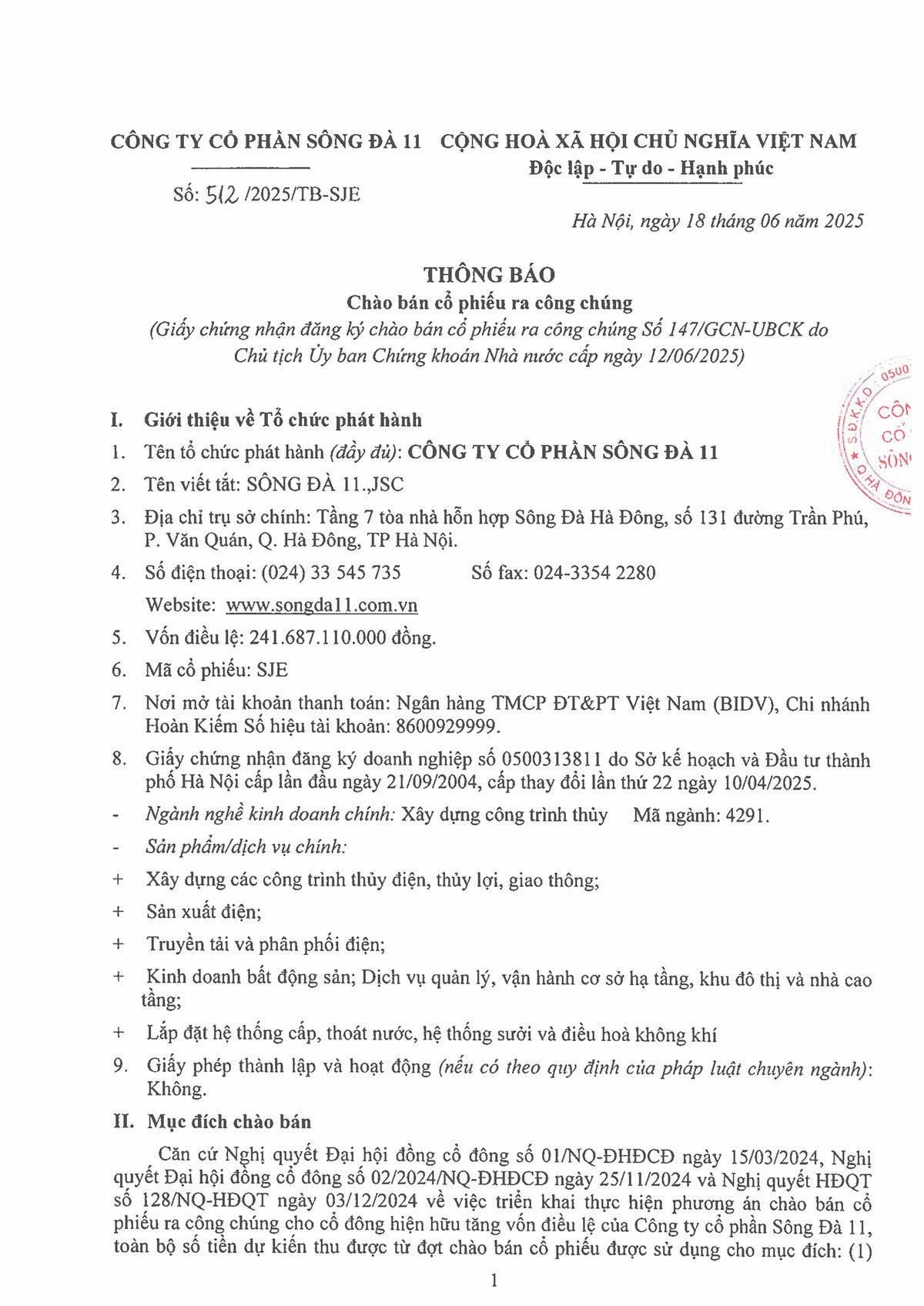 Sông Đà 11 (SJE) muốn chào bán hơn 18 triệu cổ phiếu cho cổ đông hiện hữu, giá 13.000 đồng 28/08/2024 14:31