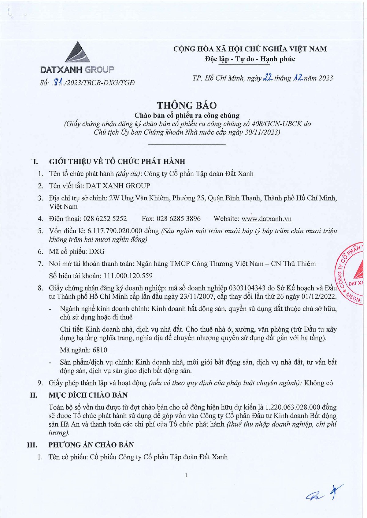 Thanh Trúc Tin liên quan Đất Xanh (DXG) sắp phát hành 9 triệu cổ phiếu ESOP giá 0 đồng 22/12/2023 06:27 Đất Xanh (DXG) phát hành thêm gần 102 triệu cổ phiếu, giá 12.000 đồng/CP 06/12/2023 11:55 Công ty Cổ phần Tập đoàn Đất Xanh (DXG) thông báo chào bán cổ phiếu ra công chúng 06/12/2023 08:00 Từ khóa DXG