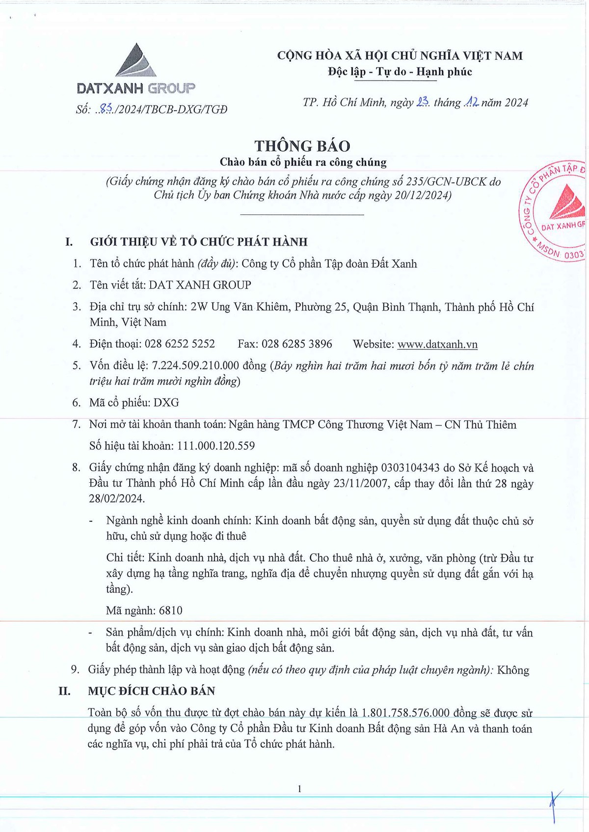 Tin liên quan Công ty cổ phần Tập đoàn Đất Xanh (DXG) thông báo chào bán cổ phiếu ra công chúng 24/12/2024 07:00 Lợi nhuận nửa đầu năm 2024 tăng đột biến, Đất Xanh (DXG) nói gì? 07/08/2024 16:03 Ông Lương Trí Thìn đảm nhận chức danh Chủ tịch Hội đồng chiến lược Tập đoàn Đất Xanh (DXG) 03/07/2024 16:51 Từ khóa DXG