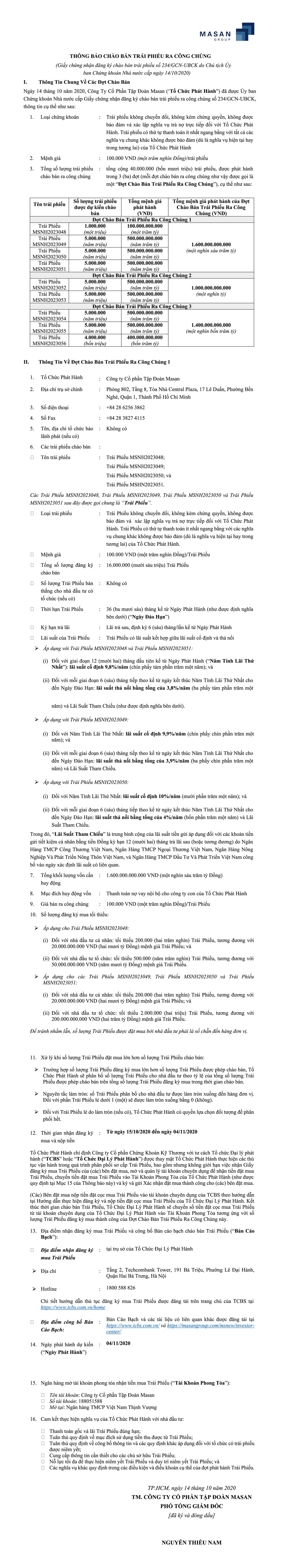 Công ty Cổ phần Tập đoàn Masan thông báo phát hành trái phiếu ra công chúng