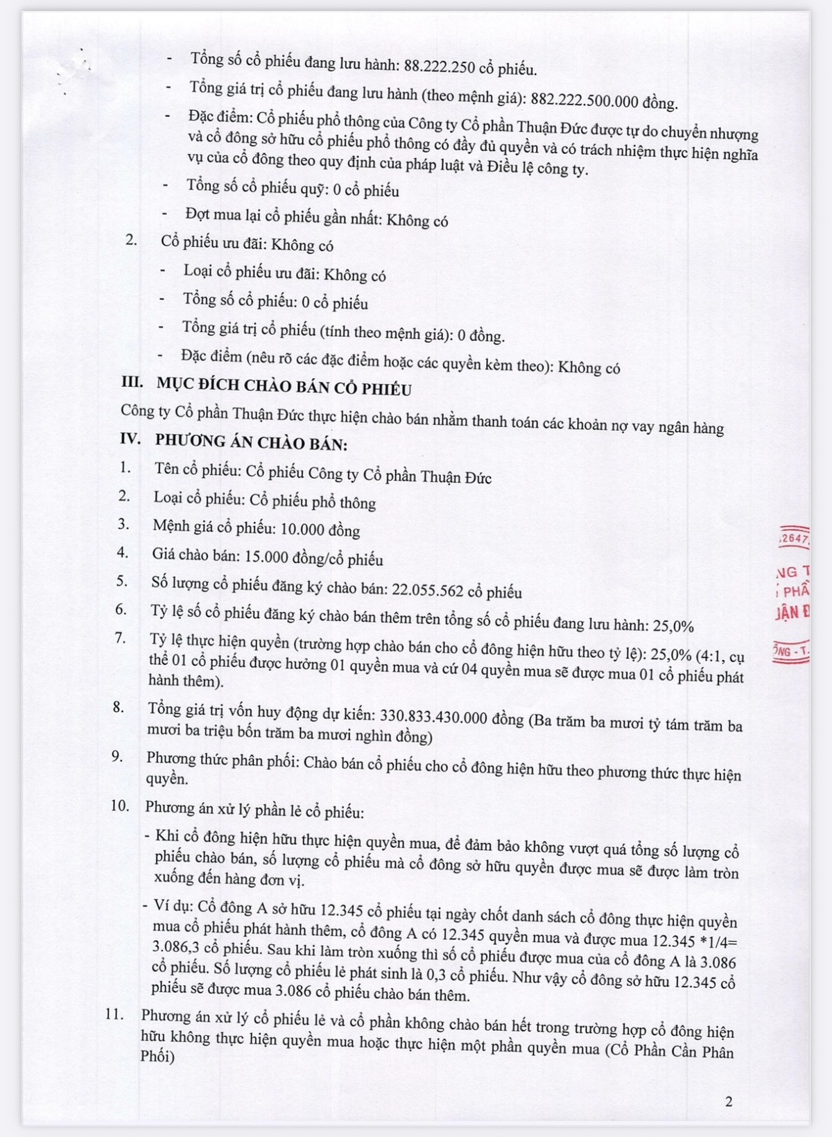 Công ty cổ phần Thuận Đức (TDP) thông báo chào bán cổ phiếu ra công chúng (Kỳ 1)