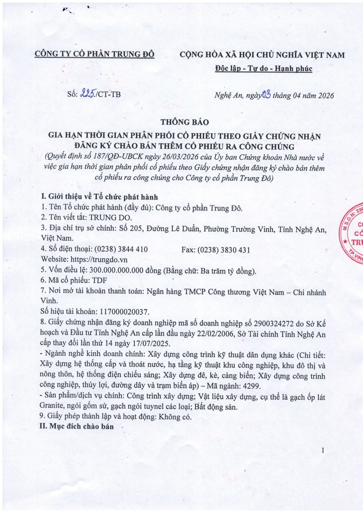 Công ty Cổ phần Đầu tư Hạ tầng Kỹ thuật Thành phố Hồ Chí Minh (CII) thông báo chào bán trái phiếu ra công chúng (kỳ 1) 16/03/2026 08:00