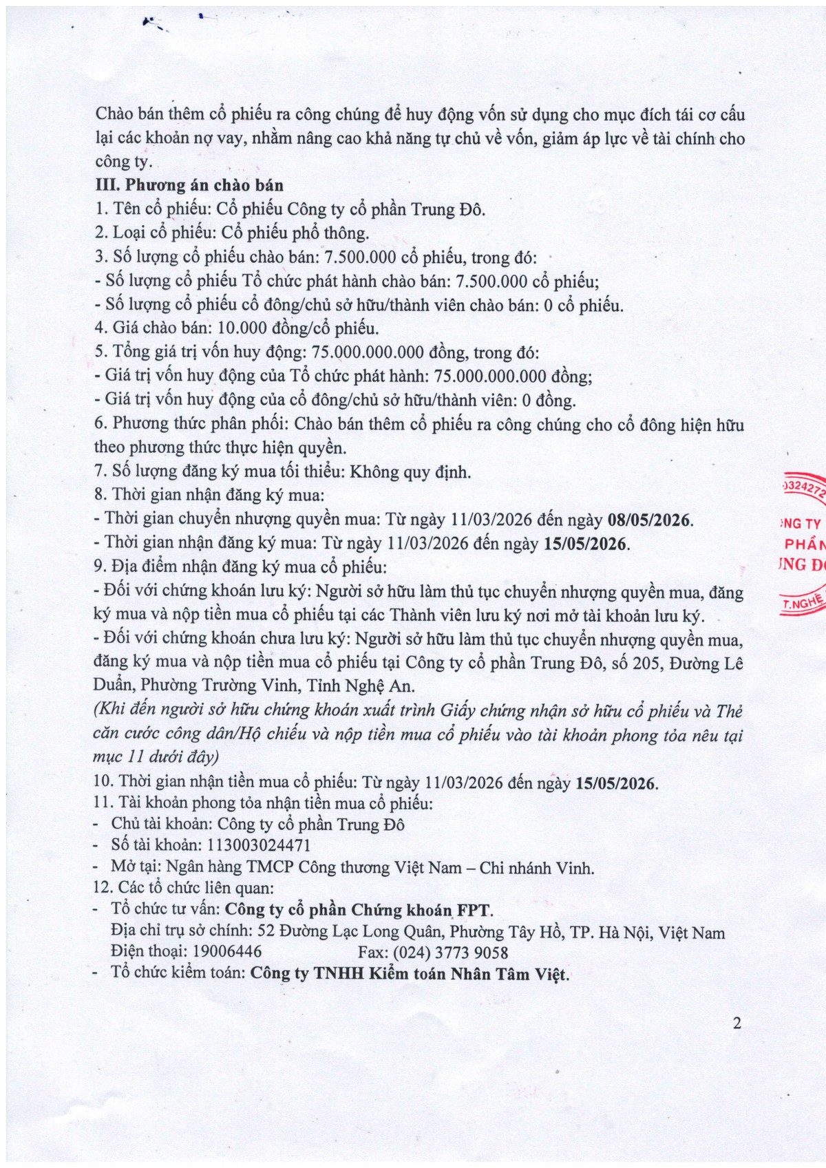 Công ty Cổ phần Đầu tư Hạ tầng Kỹ thuật Thành phố Hồ Chí Minh (CII): Thông báo chào bán trái phiếu ra công chúng (kỳ 2) 17/03/2026 08:00