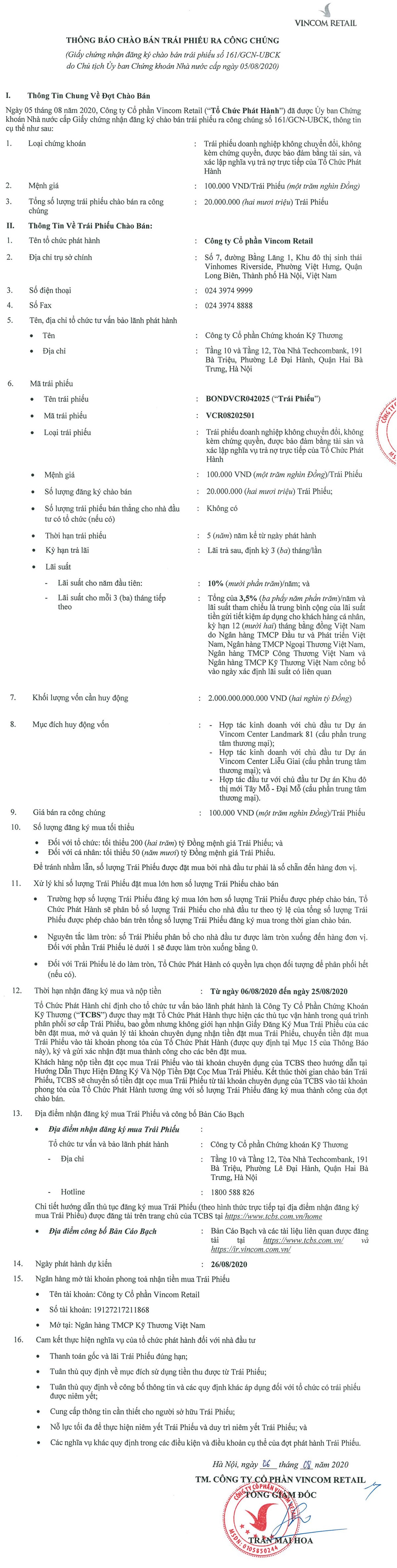 Công ty cổ phần Vincom Retail công bố chào bán trái phiếu ra công chúng