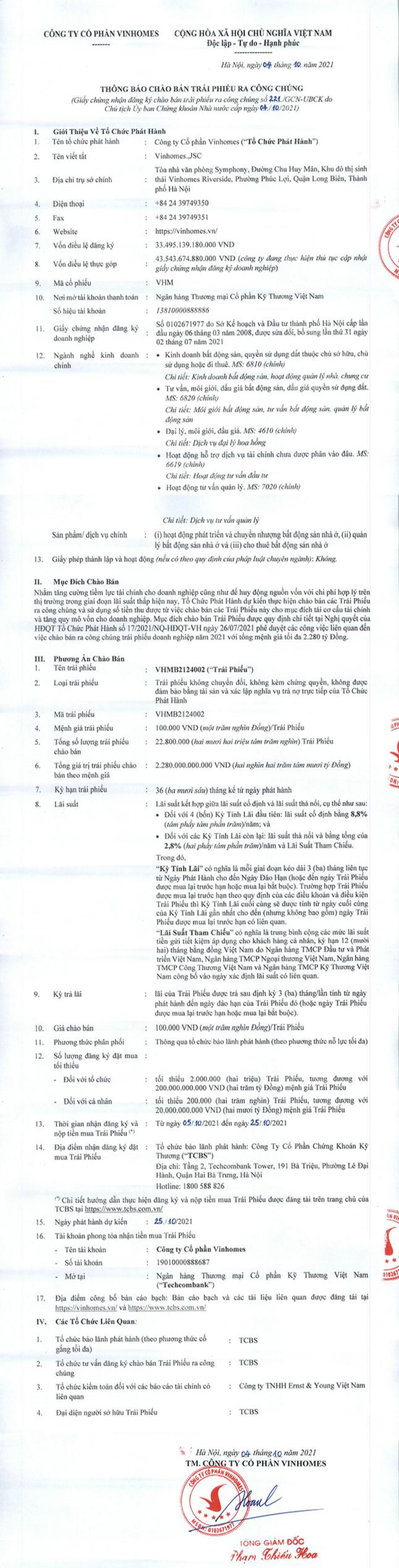 Tin liên quan CTCP Chứng khoán TP. Hồ Chí Minh thông báo chào bán cổ phiếu ra công chúng 28/09/2021 12:52 Công ty cổ phần Điện Gia Lai (GEG) thông báo chào bán trái phiếu ra công chúng 22/09/2021 07:00 CTCP Đầu tư dịch vụ Tài chính Hoàng Huy (TCH) thông báo chào bán cổ phiếu ra công chúng 01/09/2021 07:02 Từ khóa vinhomes