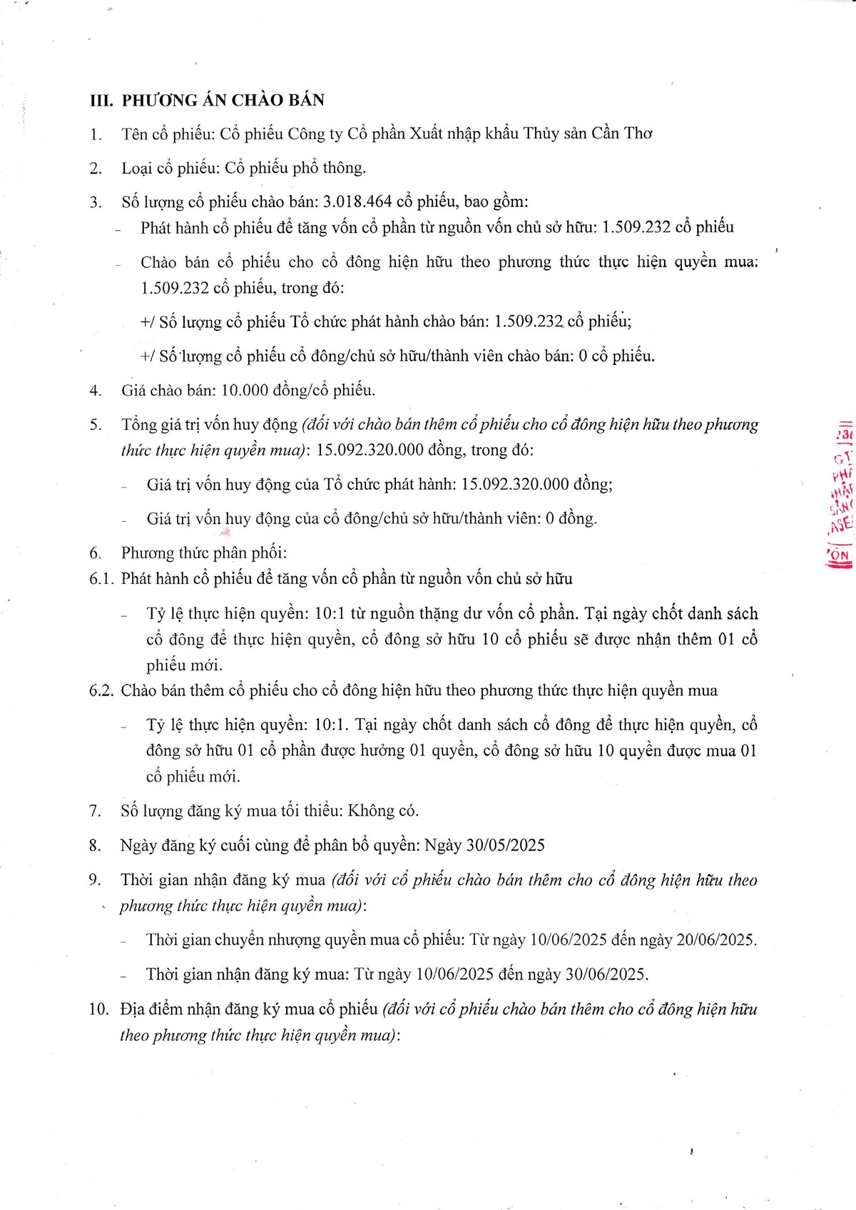Công ty cổ phần Xuất nhập khẩu Thủy sản Cần Thơ thông báo chào bán cổ phiếu ra công chúng (kỳ 1) 19/05/2025 07:00