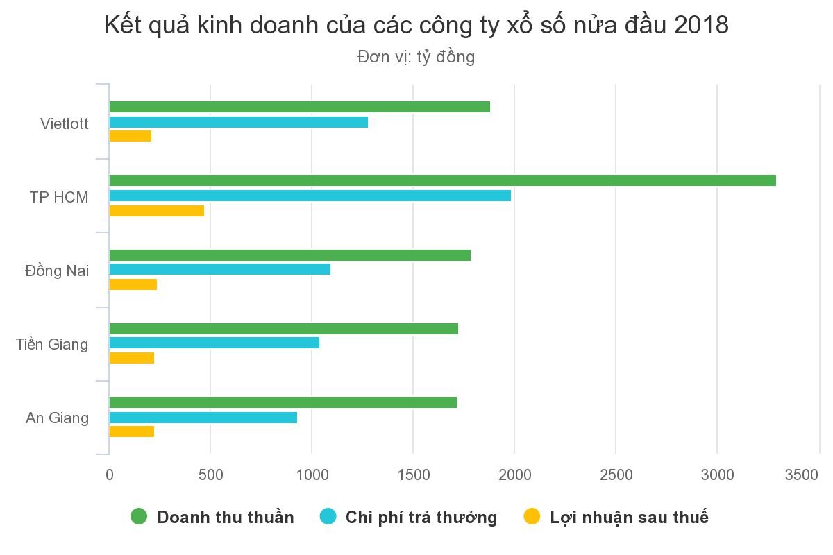 Chi phí trả thưởng của Xổ số TP HCM, Đồng Nai, An Giang và cả Vietlott trong sáu tháng đầu năm đều dao động khoảng 1.000-2.000 tỷ.