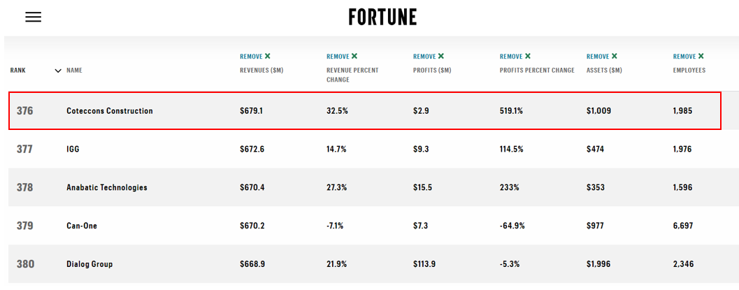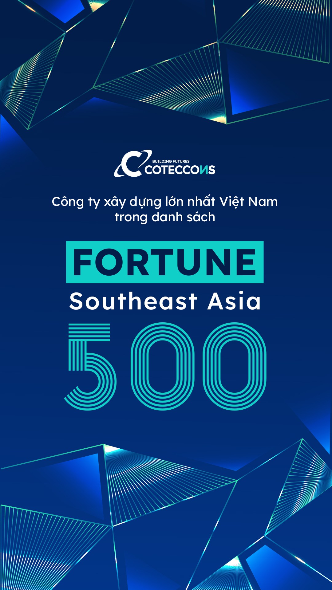 Việc được liệt kê trong danh sách Fortune 500 Đông Nam Á đã khẳng định thành công theo "Cách Coteccons" trong việc thúc đẩy những nỗ lực về sự minh bạch, tính chính trực để trở thành “Industry Leader”.