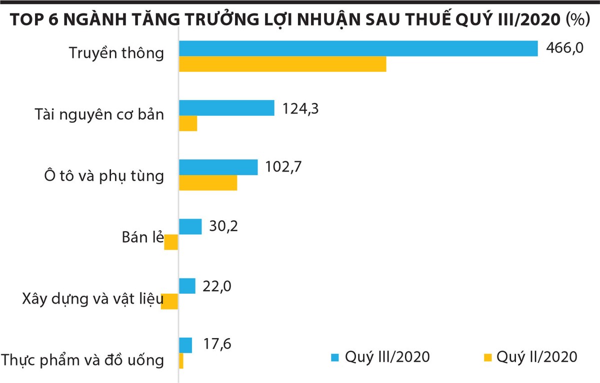 Riêng ngành bán lẻ có doanh thu quý III/2020 gấp 7 lần quý II/2020, lợi nhuận sau thuế tăng 30,2%. Cùng chung đà tăng trưởng, doanh nghiệp ngành tài chính ghi nhận kết quả kinh doanh tốt.