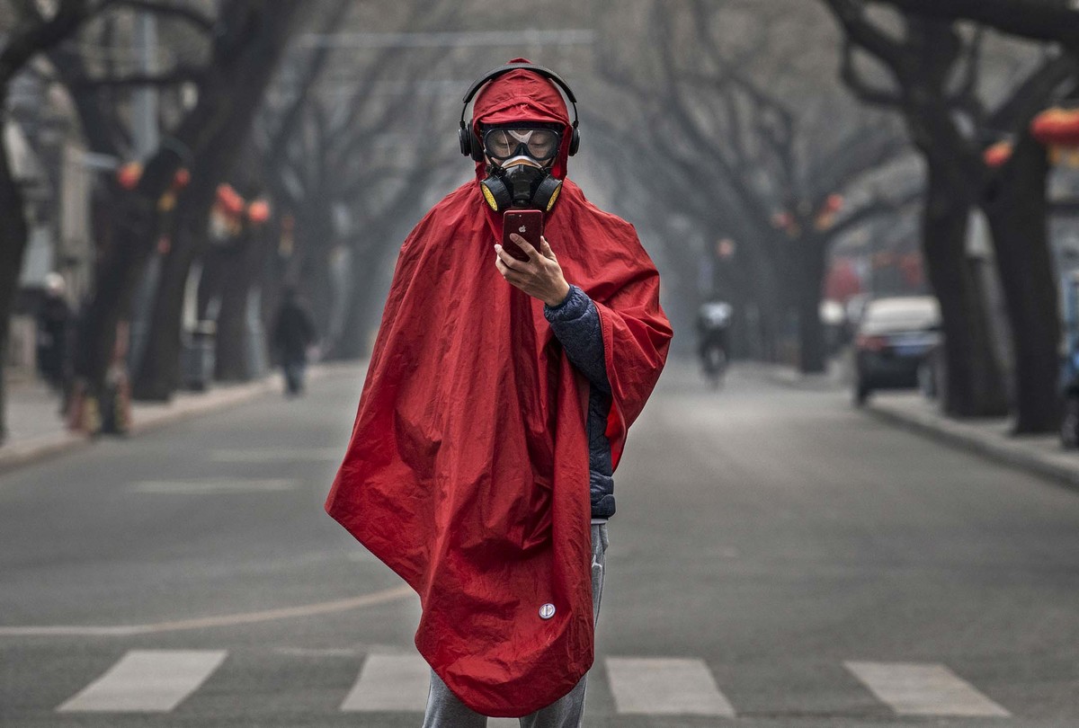 Một người dân Bắc Kinh hiếm hoi ra đường vào dịp Tết Nguyên đán. Tết năm nay, chính quyền ở Bắc Kinh và một số thành phố khác của Trung Quốc đã hủy bỏ tất cả các sự kiện quy mô lớn. Ảnh: Getty Images.