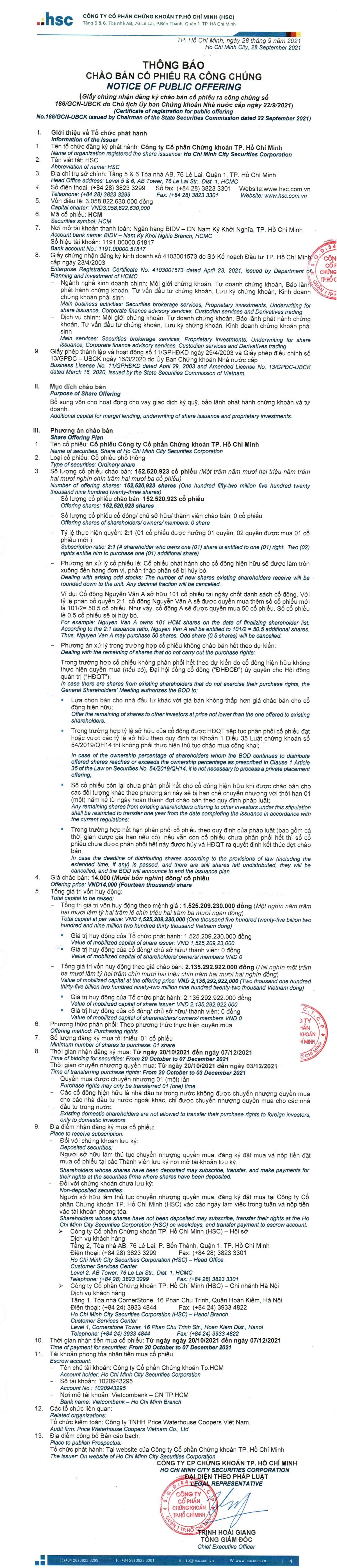 Tin liên quan Công ty cổ phần Điện Gia Lai (GEG) thông báo chào bán trái phiếu ra công chúng 22/09/2021 07:00 Ngân hàng Standard Chartered Việt Nam thông báo tăng vốn điều lệ 01/09/2021 07:36 CTCP Đầu tư dịch vụ Tài chính Hoàng Huy (TCH) thông báo chào bán cổ phiếu ra công chúng 01/09/2021 07:02 Từ khóa Chứng khoán TP.HCM hsc