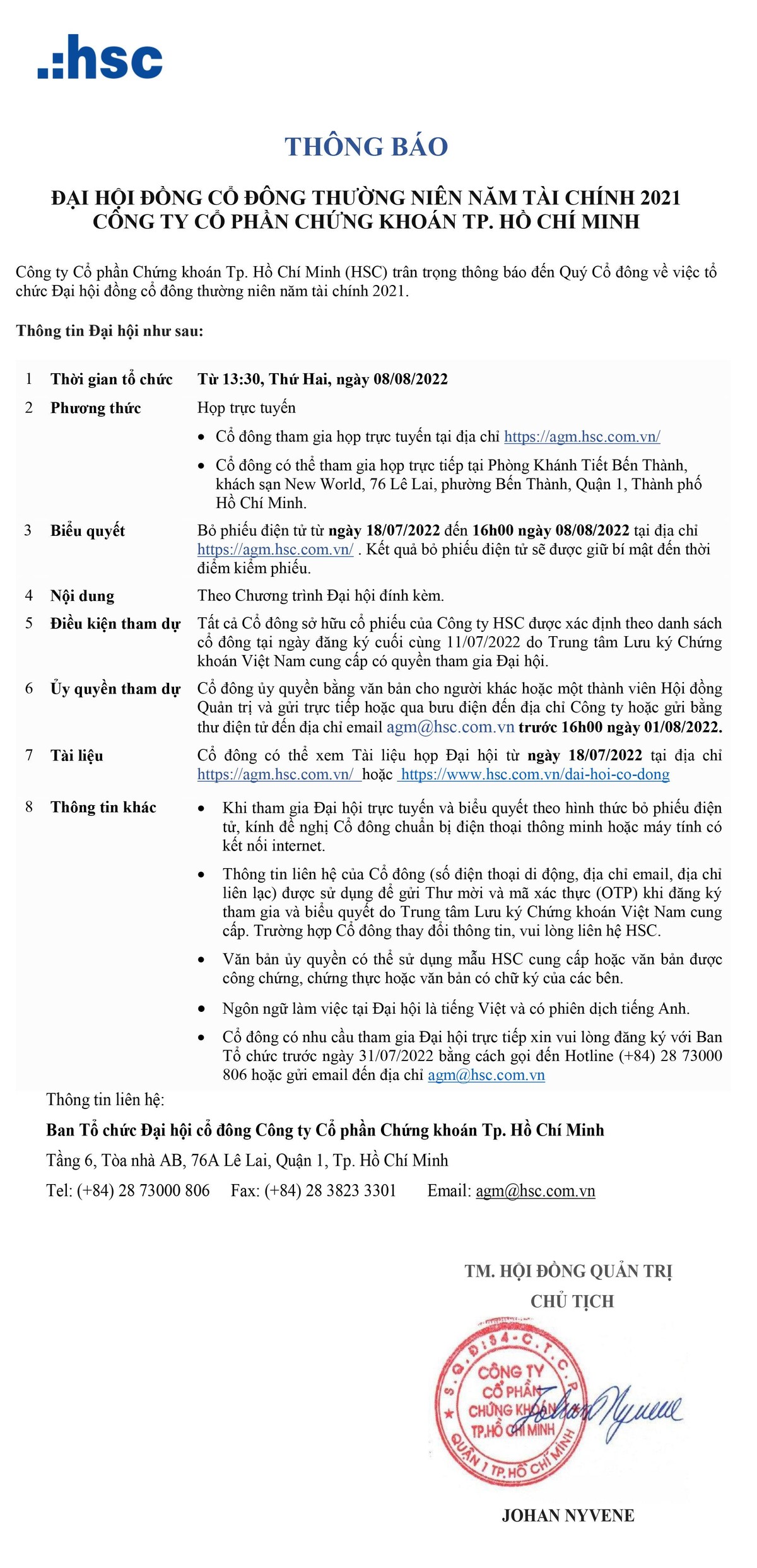 Tin liên quan CTCP Tập đoàn Nam Mê Kông (VC3) thông báo chào bán thêm cổ phiếu ra công chúng 23/07/2022 07:04 CTCP Nông nghiệp BAF Việt Nam thông báo chào bán trái phiếu ra công chúng năm 2022 (đợt 1) 22/07/2022 10:21 CTCP Tập đoàn Nam Mê Kông (VC3) thông báo chào bán thêm cổ phiếu ra công chúng 22/07/2022 08:00 Từ khóa CTCP Chứng khoán Tp.Hồ Chí Minh hsc