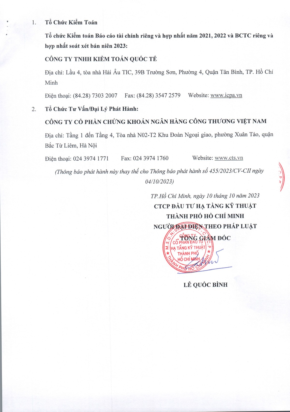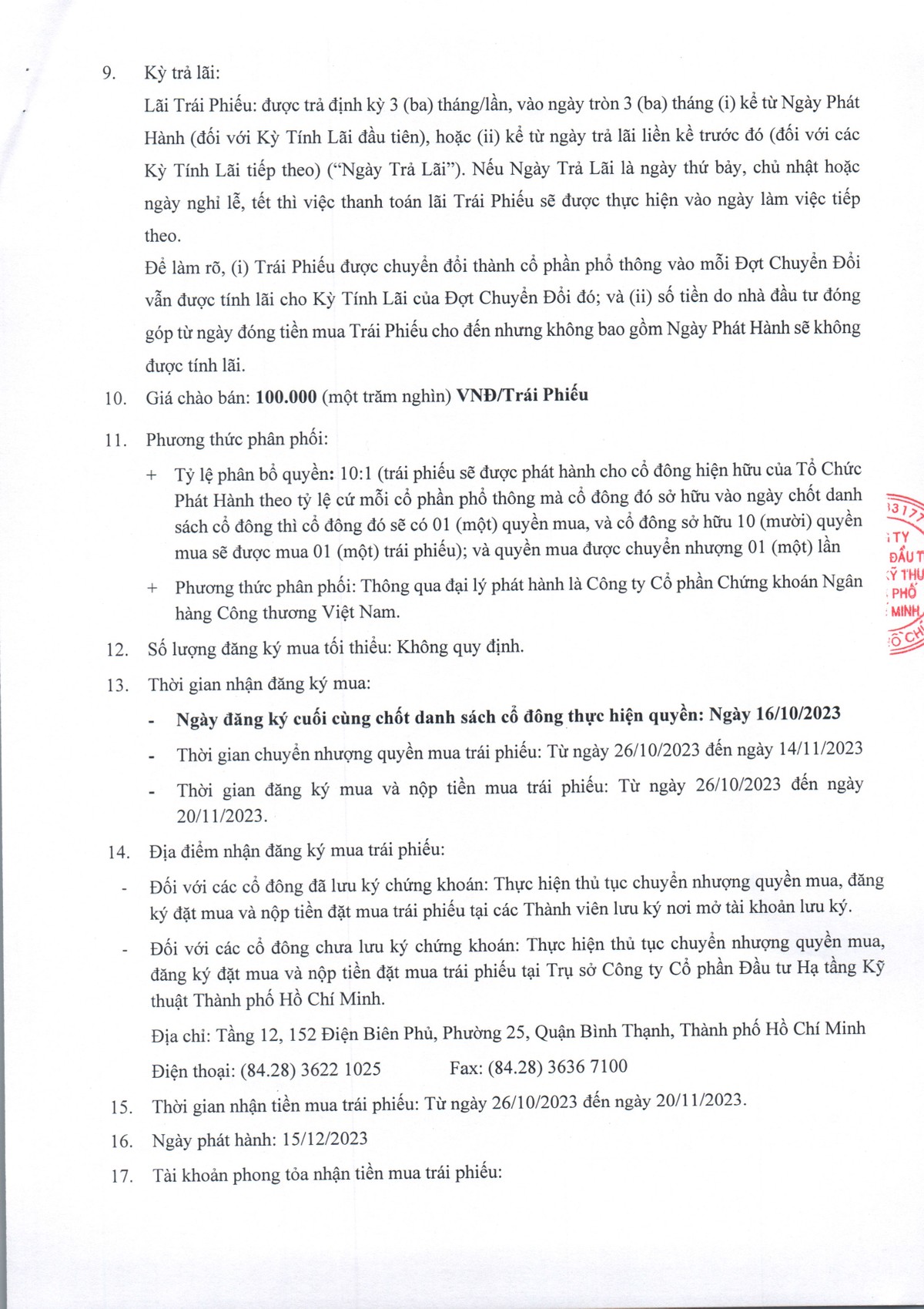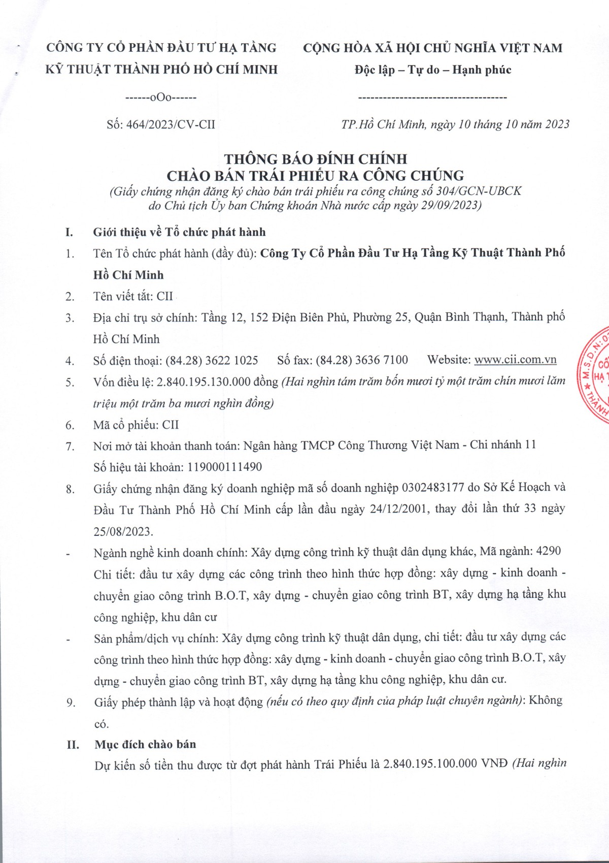 CTCP Đầu tư hạ tầng kỹ thuật Thành phố Hồ Chí Minh (CII) thông báo chào bán trái phiếu ra công chúng 05/10/2023 07:10
