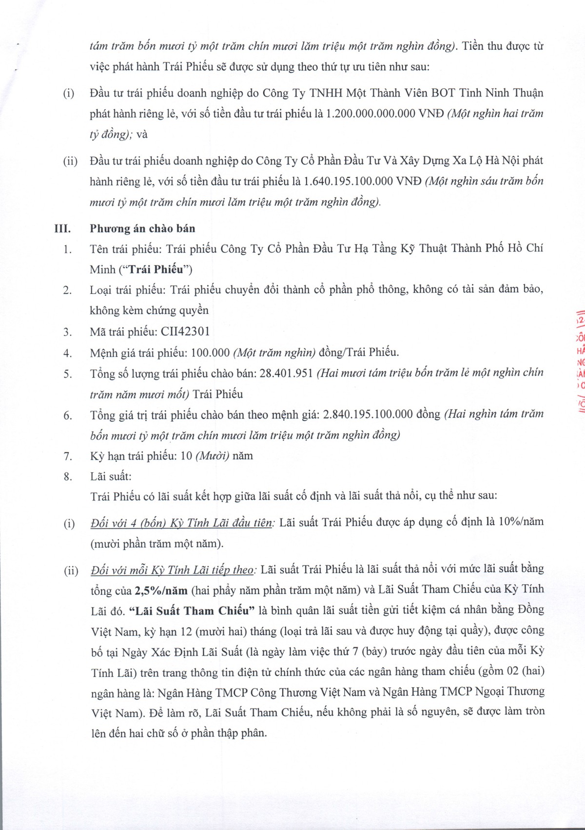 CTCP Đầu tư hạ tầng kỹ thuật Thành phố Hồ Chí Minh (CII) thông báo chào bán trái phiếu ra công chúng 06/10/2023 07:15