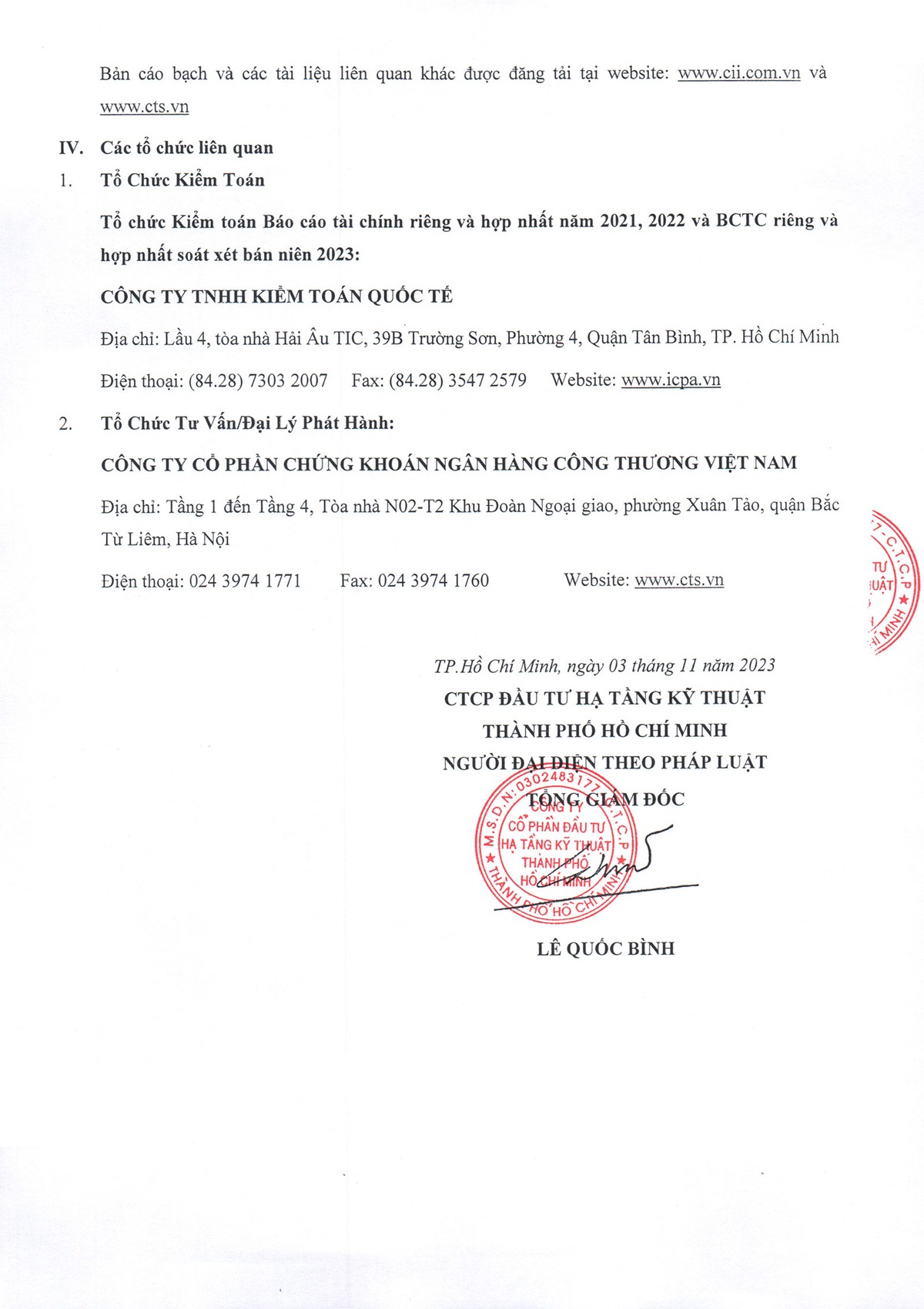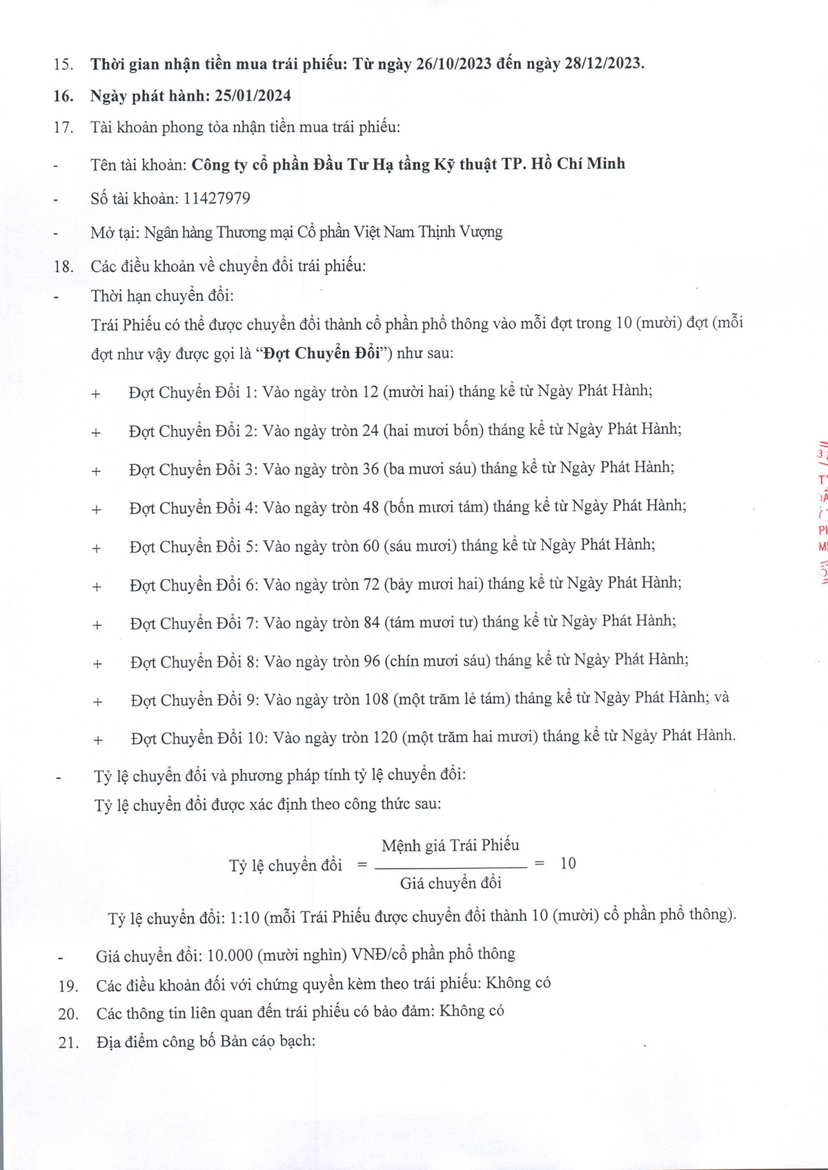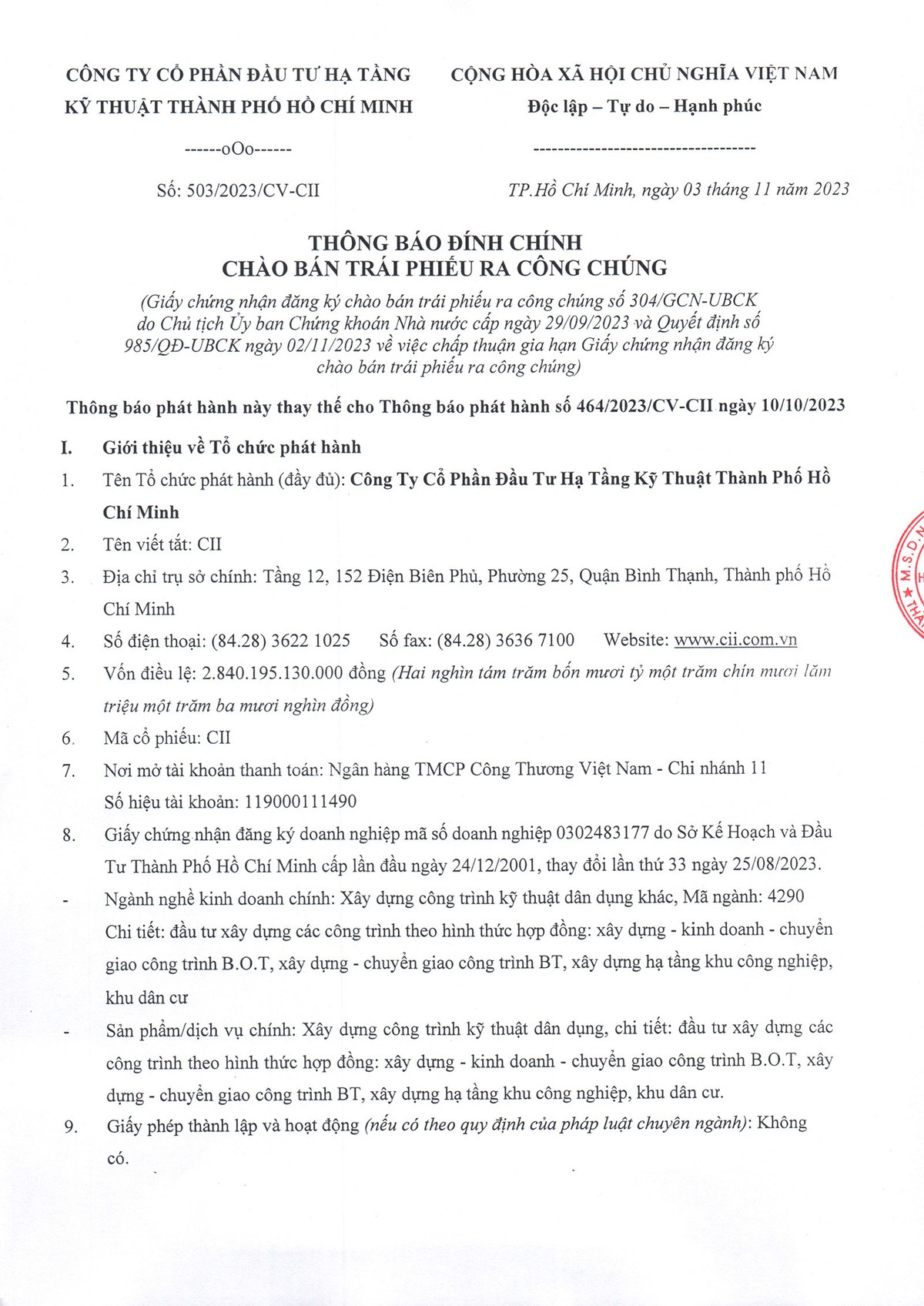 Đầu tư Hạ tầng Kỹ thuật TP. HCM (CII): Giữ đúng lời hứa, ông Lê Quốc Bình và vợ đăng ký mua trái phiếu chuyển đổi 23/10/2023 23:07