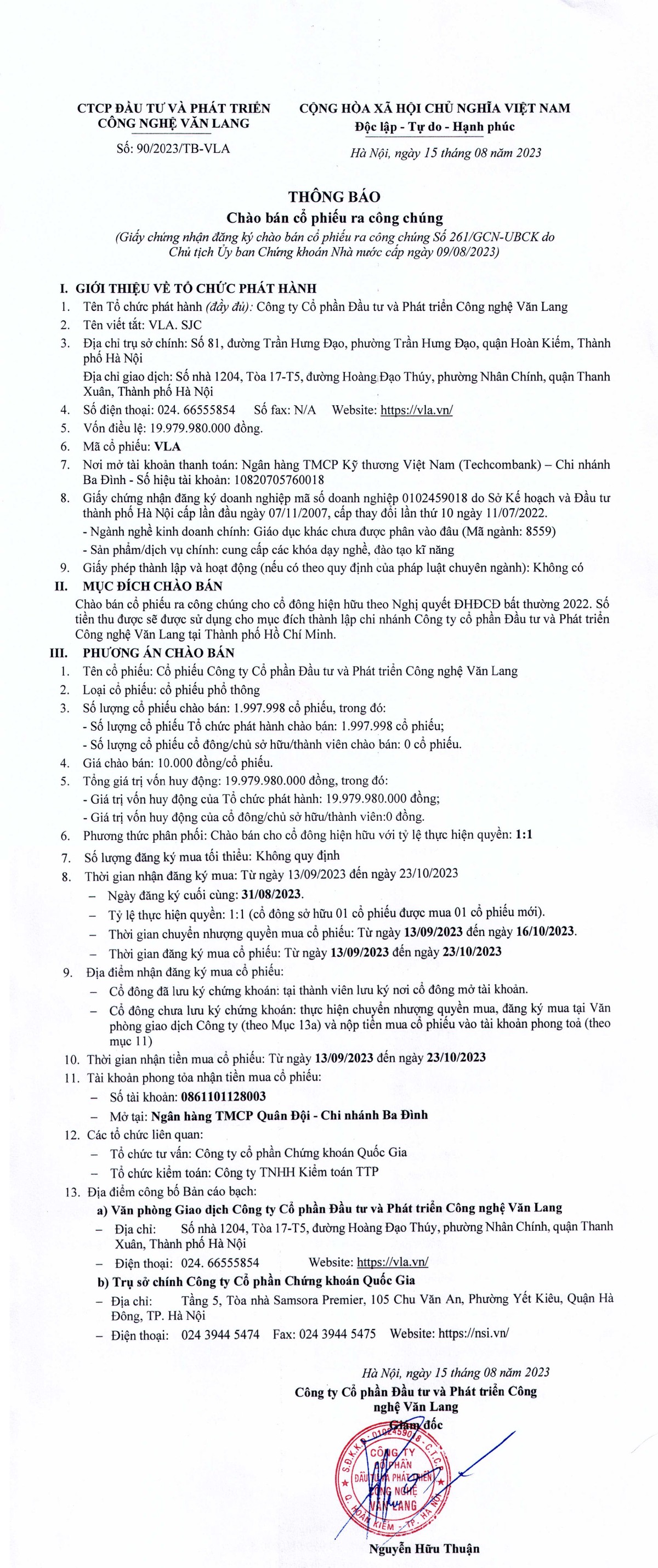 Chia sẻ Chia sẻ Tin liên quan CTCP Khu công nghiệp Cao su Bình Long thông báo chào bán cổ phiếu ra công chúng 20/07/2023 08:00 CTCP Khu công nghiệp Cao su Bình Long thông báo chào bán cổ phiếu ra công chúng 19/07/2023 09:59 CTCP Khu công nghiệp Cao su Bình Long thông báo chào bán cổ phiếu ra công chúng 18/07/2023 14:06 Từ khóa công nghệ Văn Lang