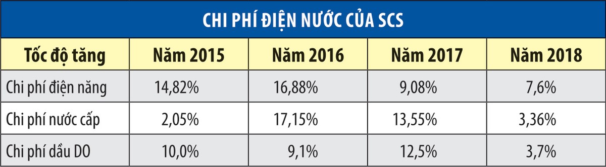 Chi phí giá vốn, đầu tư, sửa chữa hàng năm thấp, chủ yếu là các chi phí nhân công, khấu hao và dịch vụ mua ngoài, nguyên vật liệu phần lớn là tấm nylon để gói hàng hóa, nên biên lợi nhuận của SCS là cao.