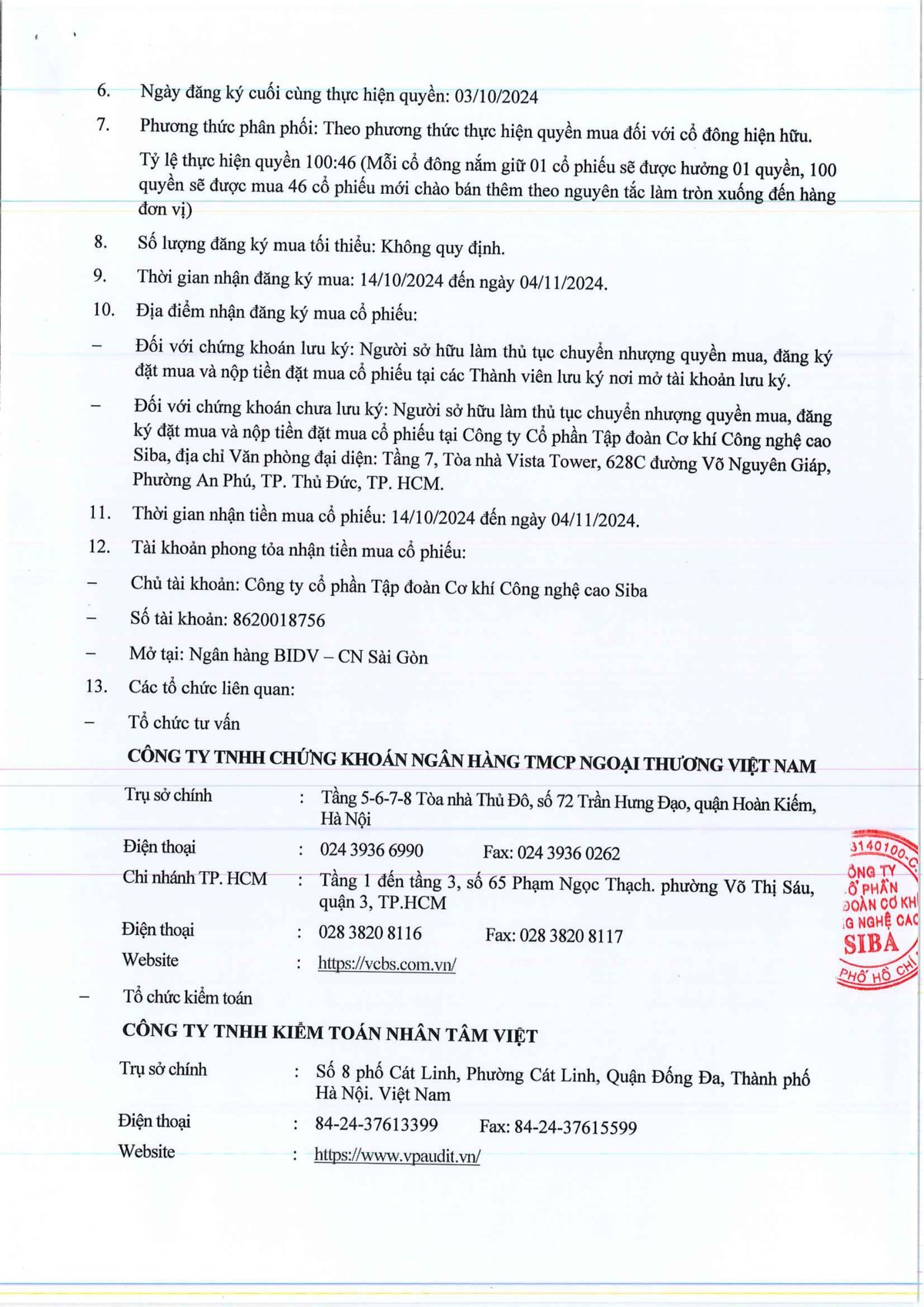 Công ty cổ phần Tập đoàn Cơ khí công nghệ cao SIBA thông báo chào bán cổ phiếu ra công chúng 10/09/2024 09:21