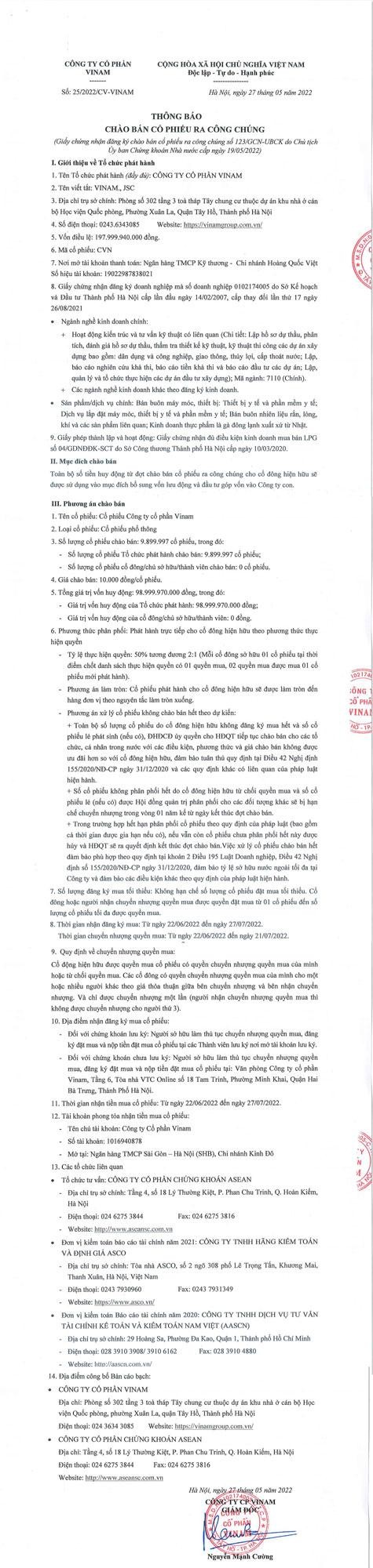 CTCP Sản xuất Kinh doanh Dược và Trang thiết bị Y tế Việt Mỹ thông báo gia hạn đăng ký mua cho người sở hữu chứng khoán 04/05/2022 17:00