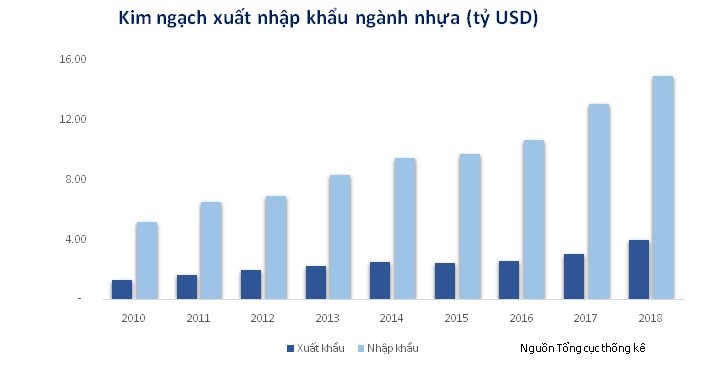 Ngành nhựa Việt Nam hiện mới đang trong giai đoạn phát triển. Ước tính quy mô sản xuất năm 2018 là 7,3 triệu tấn, giá trị đạt khoảng 16 tỷ USD (tăng trưởng đạt 8,9%). Trong đó giá trị xuất khẩu đạt 4,01 tỷ USD và giá trị nhập khẩu đạt 14,96 tỷ USD. Tiềm năng tăng trưởng ngành còn dài hạn, sức hấp dẫn ngành đến từ cơ cấu dân số đang là dân số trẻ. Điều này phát sinh nhu cầu trực tiếp đến ngày xây dựng, bất động sản, thực phẩm,... những ngành là thị trường đầu ra chính của ngành nhựa.