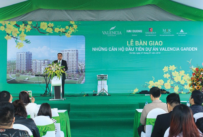Phát biểu trong buổi Lễ bàn giao những căn hộ đầu tiên dự án Valencia Garden, ông Vũ Đình Chiến, Chủ tịch Công ty TNHH Đầu tư và Tư vấn Hải Dương, đại diện chủ đầu tư chia sẻ, tất cả những tâm huyết của chủ đầu tư đã dành cho dự án cũng như những cố gắng nỗ lực của tất cả các đơn vị thi công để có thể xây dựng Valencia Garden đúng như cam kết với khách hàng.