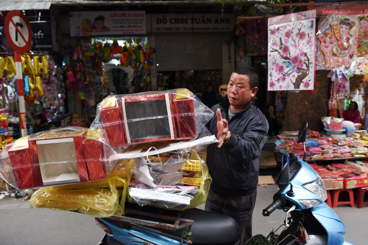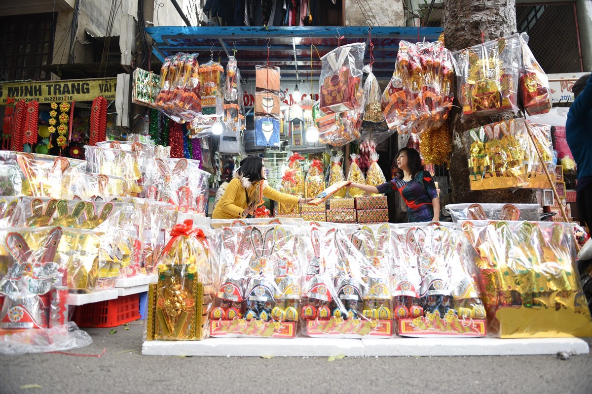 Mỗi ngày, có cửa hàng bán được cả trăm bộ vàng mã cúng Tết ông Công ông Táo chưa kể bán buôn.