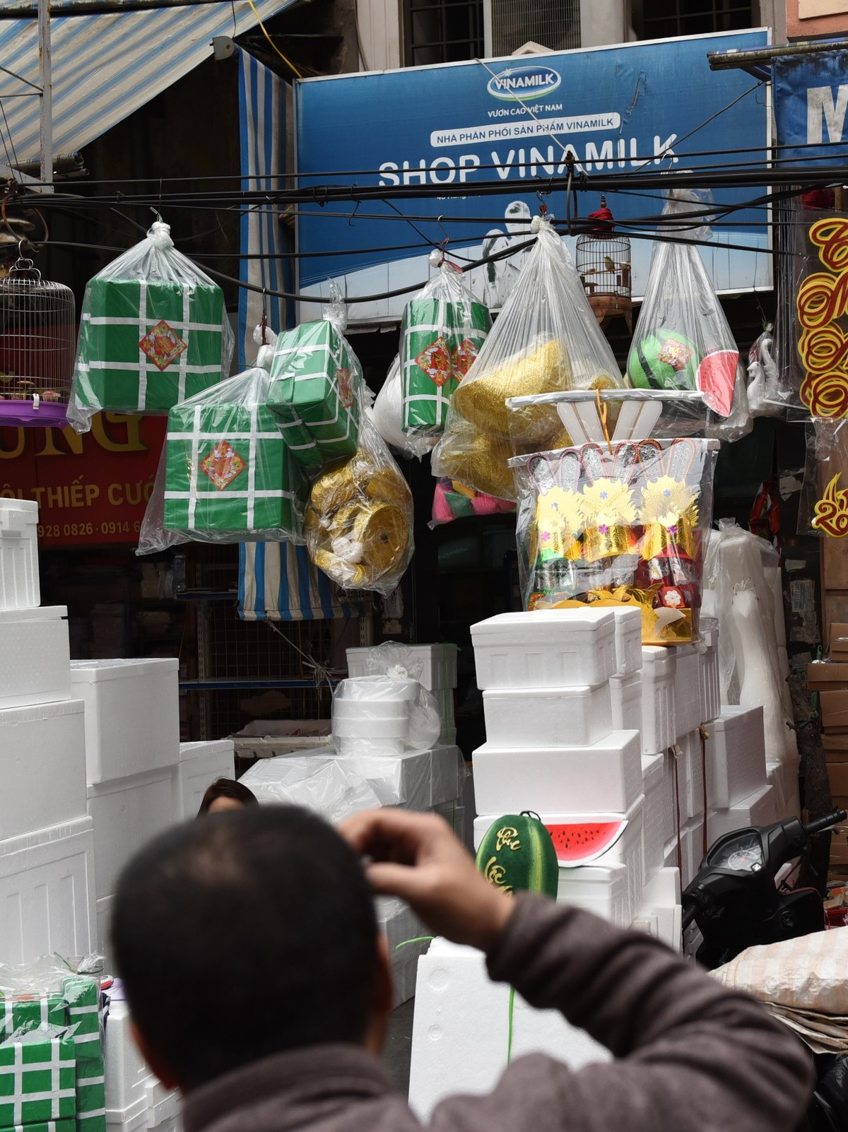 Đủ mọi loại vàng mã được treo khắp các nơi.