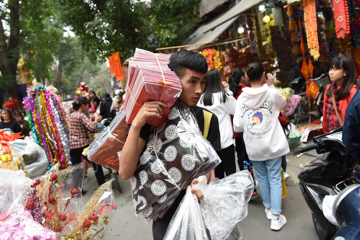 Vì nằm trong khu phố cổ, việc vận chuyển vàng mã chủ yếu cần đến xe máy. Do đó, cảnh xe máy cõng từ 2 đến chục chiếc ô tô là chuyện bình thường.