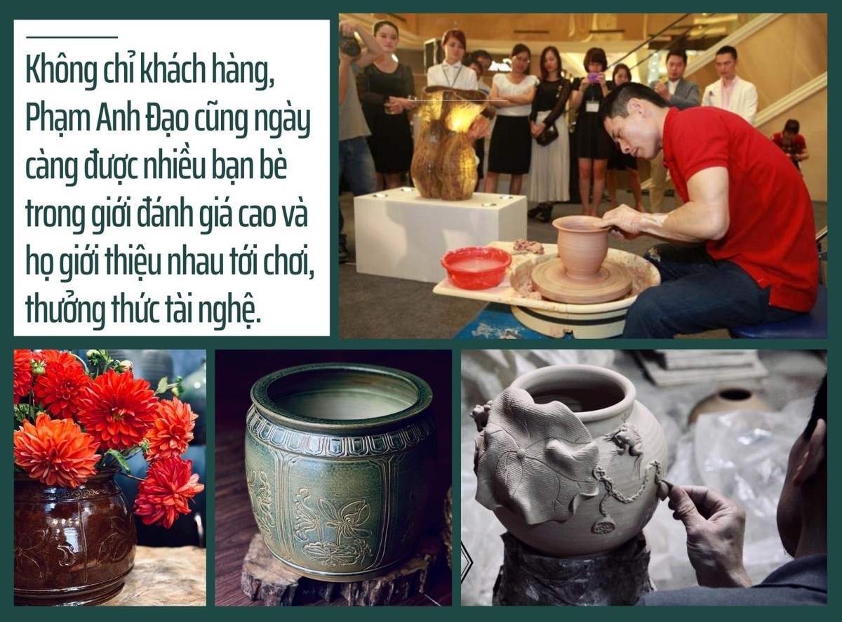 Rất nhiều khách hàng ban đầu tìm tới sản phẩm gốm của Đạo vì hiếu kỳ, nhưng càng tiếp xúc càng thấy đẹp và trân quý. Bởi, mỗi sản phẩm gốm vuốt tay là một tác phẩm độc bản, chất chứa những đam mê và hồn cốt của nghệ nhân Phạm Anh Đạo.