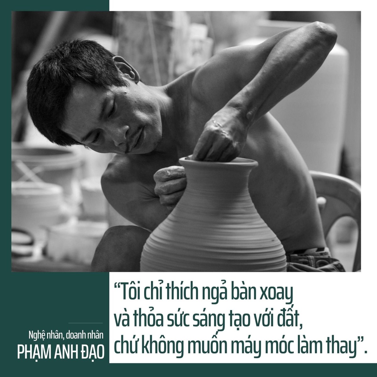 Anh bảo: “Tôi chỉ thích ngả bàn xoay và thỏa sức sáng tạo với đất, chứ không muốn máy móc làm thay”. Cũng bởi thế, trong vòng xoáy cơ chế thị trường, Đạo trở thành của hiếm ở làng Bát Tràng.