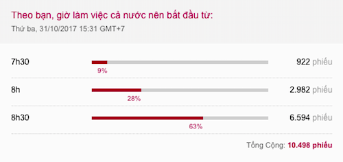 Kết quả thăm dò độc giả trên VnExpress sau một ngày đại biểu Cảnh đưa ra đề xuất đổi giờ làm.