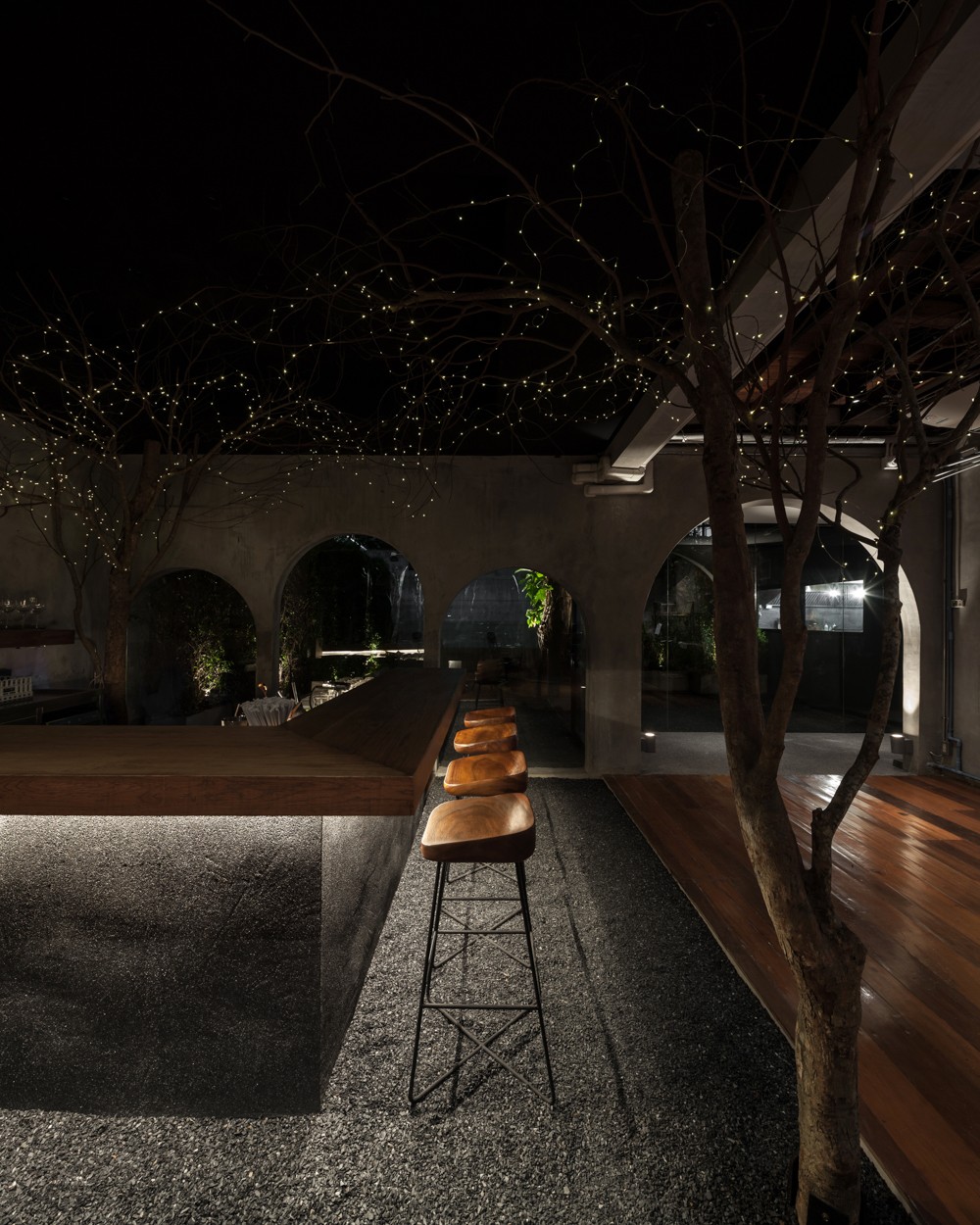 Bám sát ý tưởng “tự nhiên truyền cảm hứng”, các kiến trúc sư đã thiết kế nên những không gian mang hình ảnh thân thuộc của khu vườn buổi đêm, với bầu không khí tươi mới bao trọn cả bên trong và ngoài nhà hàng.